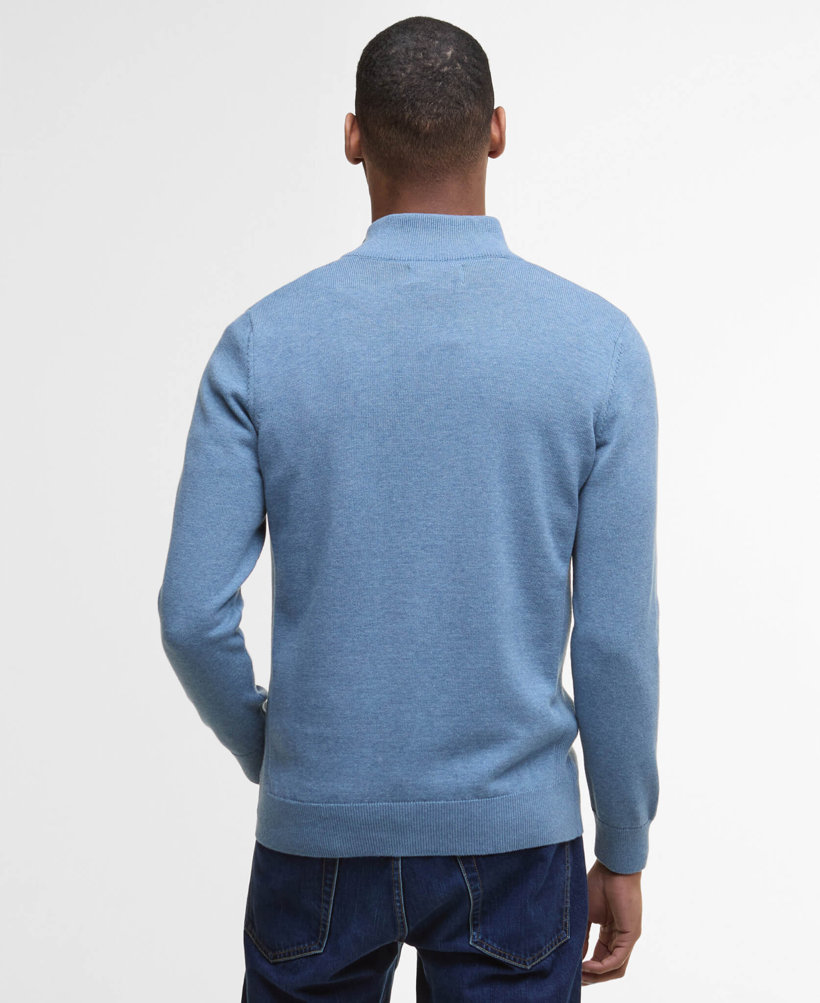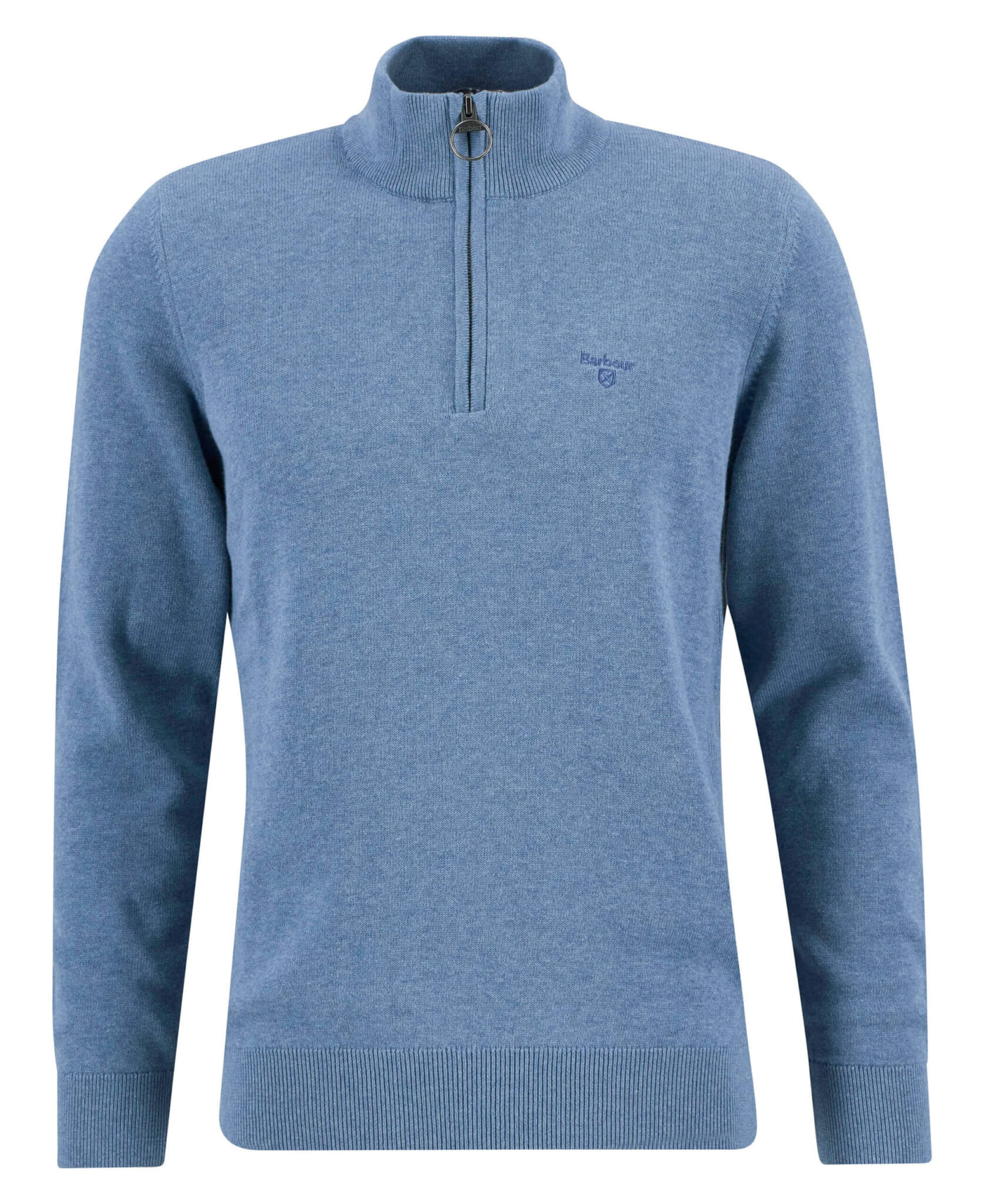 A wardrobe essential, this half-zip jumper is elevated with subtle Barbour detailing. Coming in a lightweight Cotton knit, the zip closure is trimmed with tartan to the inner facing and features our signature ring-puller detail, while a tonal embroidered logo to the chest completes the look.