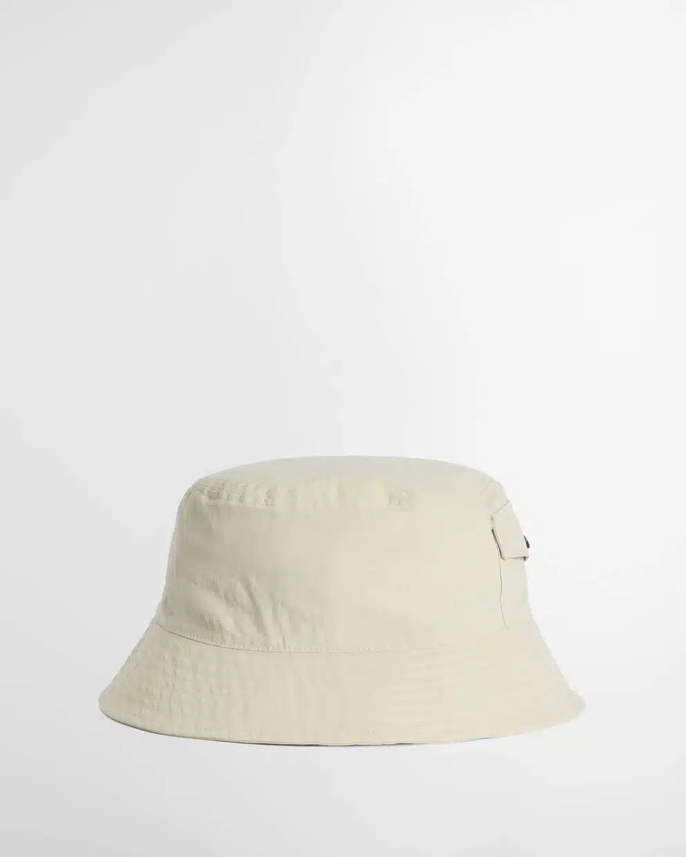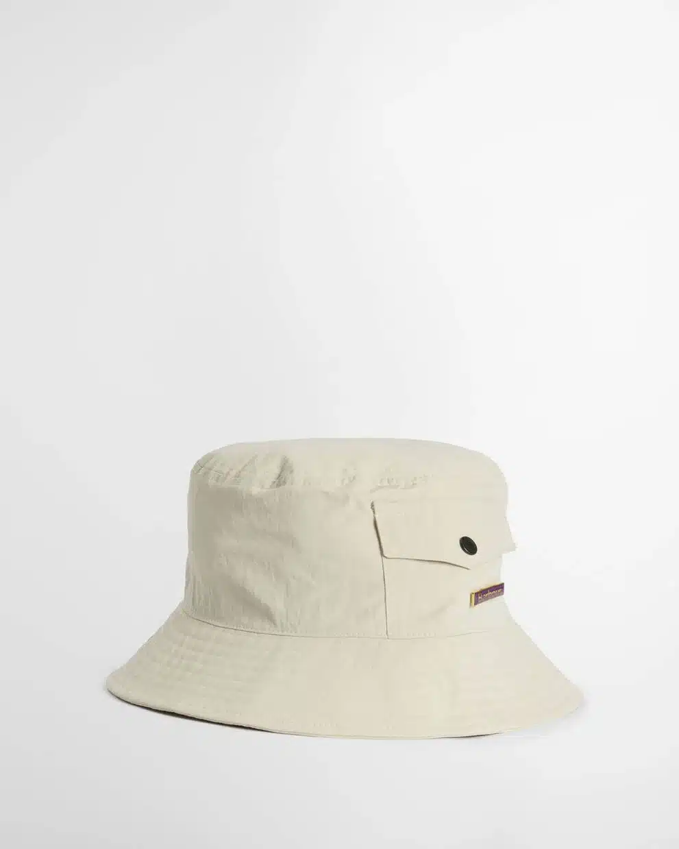 This Barbour bucket hat is crafted from lightweight, showerproof fabric, making it ideal for unpredictable weather. It features an outer pocket with a branded stud, an internal Barbour tartan trim, and a removable Barbour metal pin badge for added detail. Practical yet stylish, it’s a heritage-inspired accessory for everyday wear.