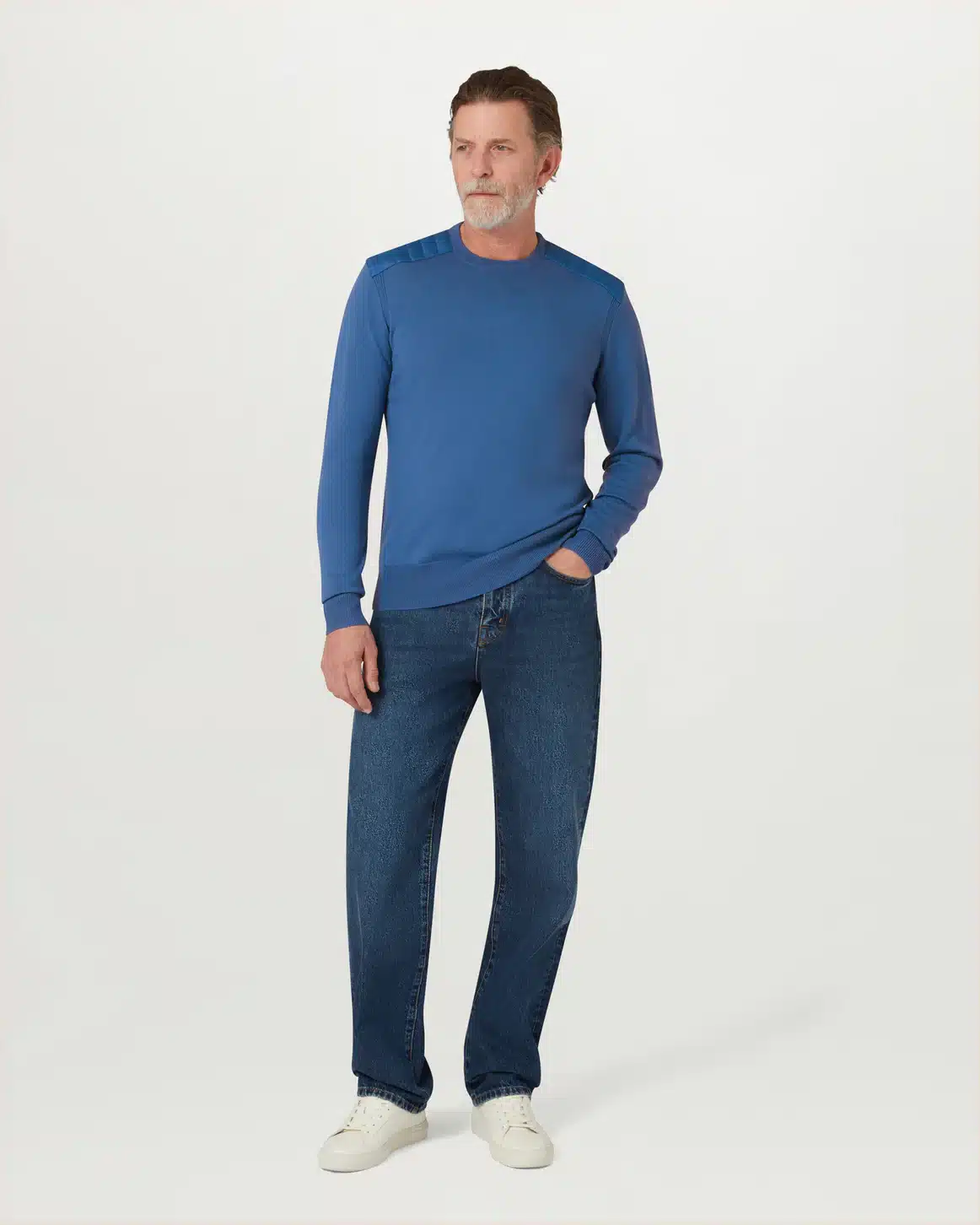 The Kerrigan crew neck in Marine Blue is expertly crafted from extra-fine merino wool. This luxurious fabric offers warmth, yet is lightweight and breathable. It wicks away moisture while regulating body temperature, making it perfect for all seasons.