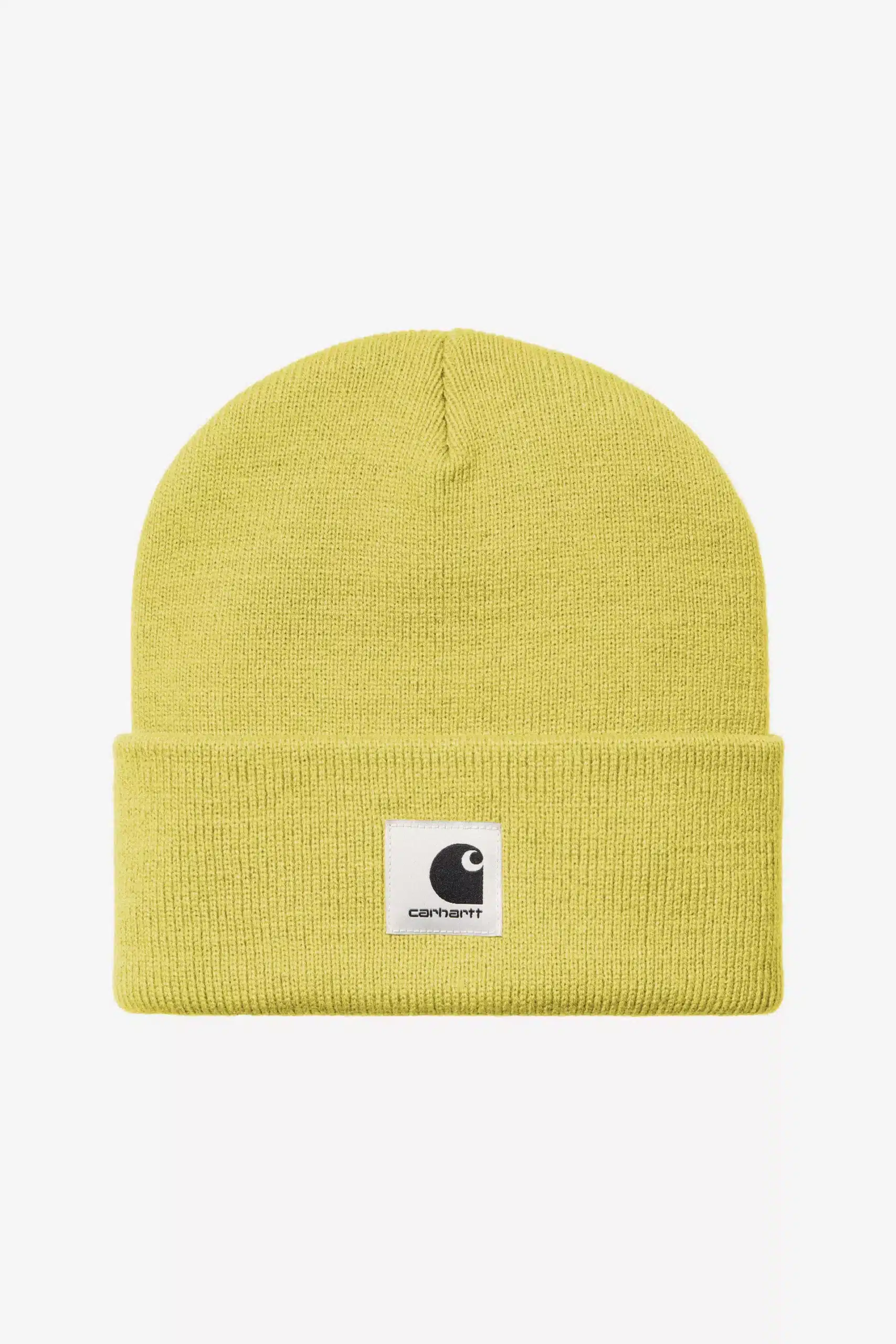The Ashley Beanie is made from acrylic yarn in a soft, rib-knit design. A woven Square Label appears on the cuff.