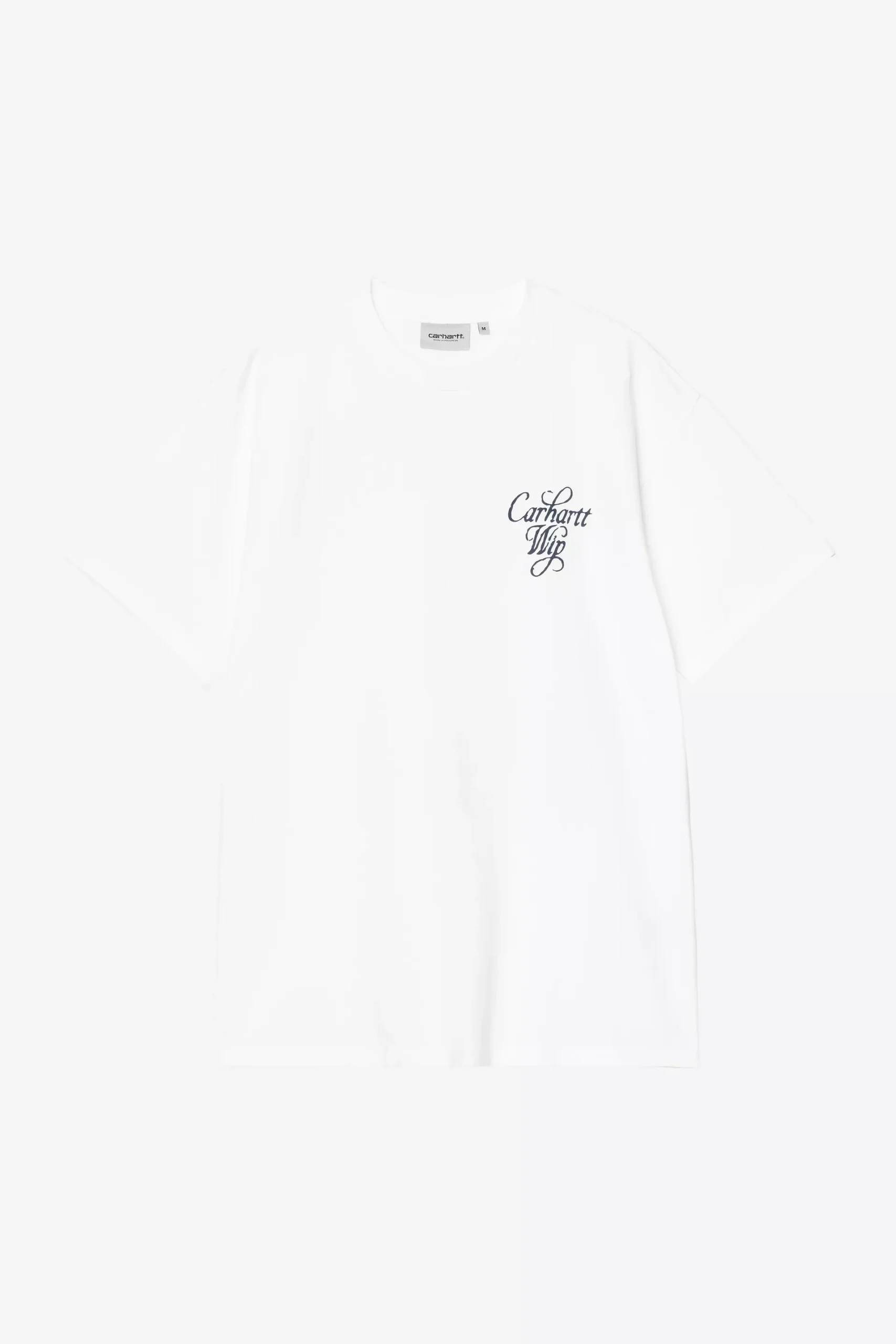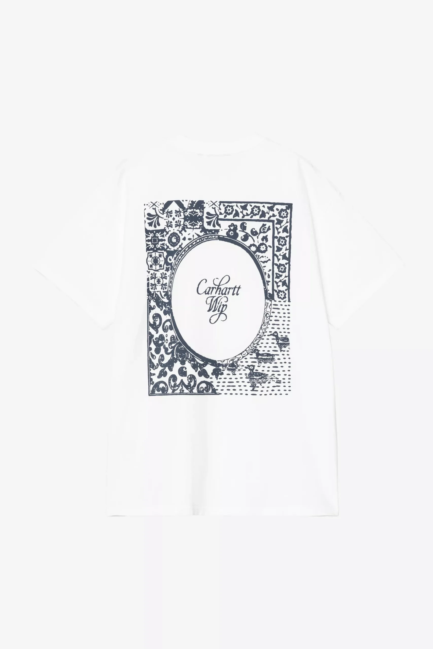The S/S Vestige T-Shirt is made in a loose fit from a midweight organic cotton jersey, which has been stone-washed for a softer feel and subtly worn-in appearance. Graphic prints appear on the front and back.