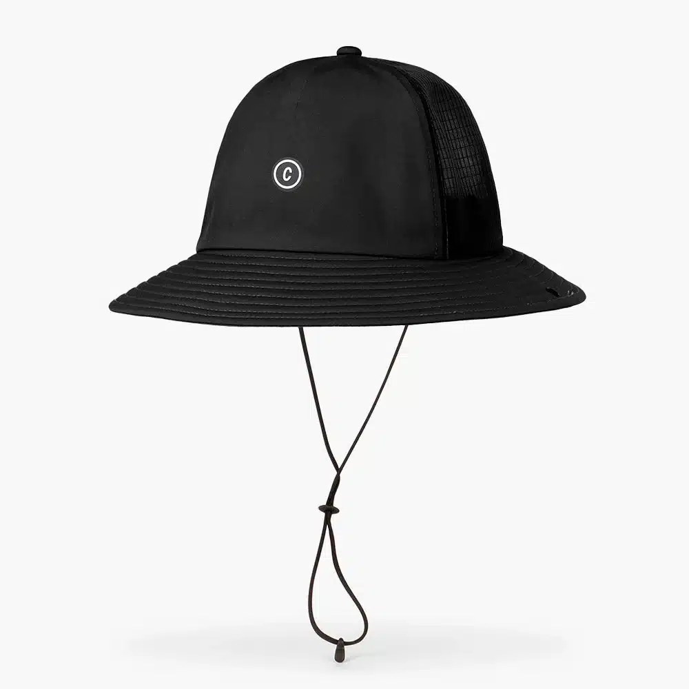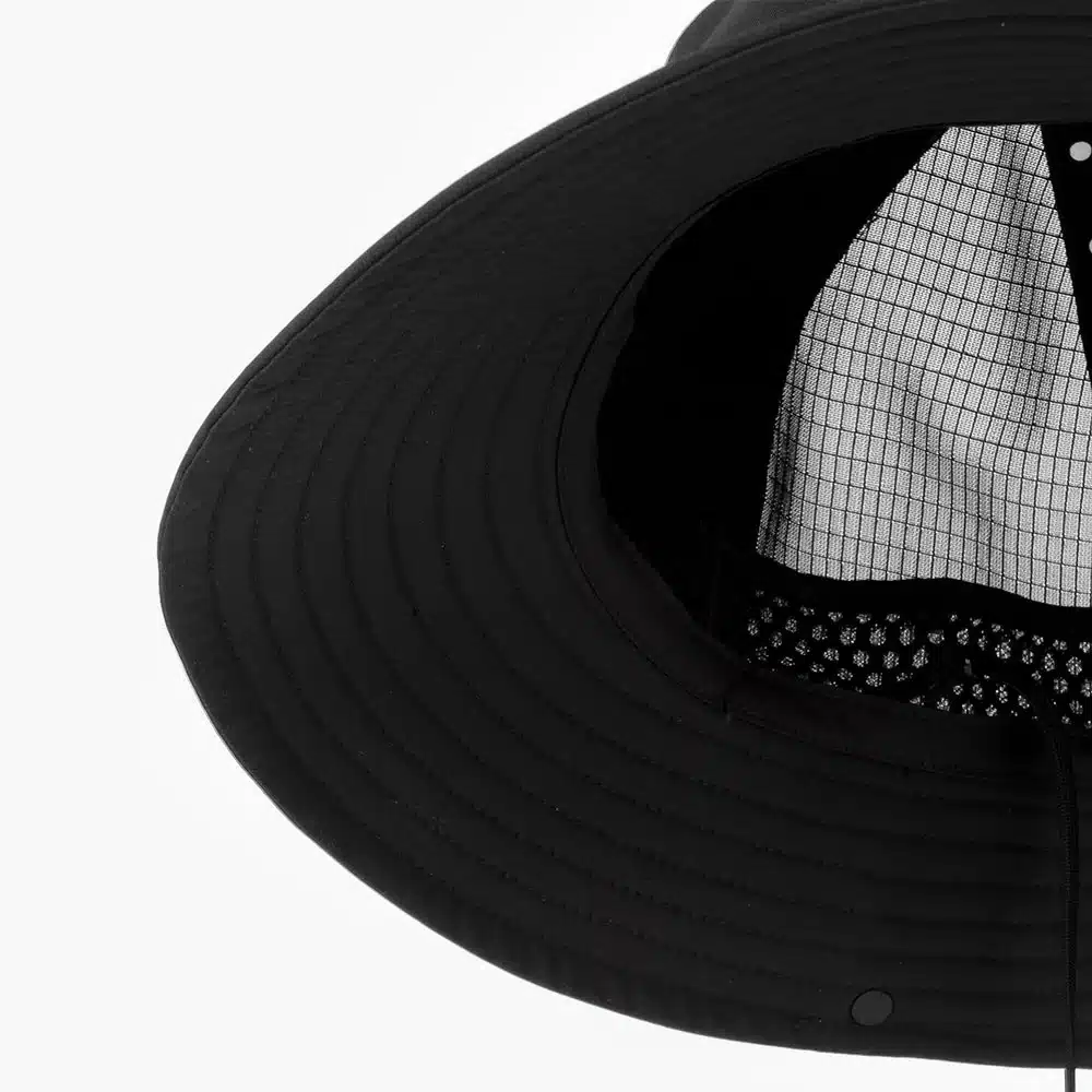 if we designed the new TRLCap to be the ultimate trail cap (we did) then this is clearly designed to be the ultimate trail bucket. the TRL crown, found on the bucket as well as the cap, was designed with intent. higher than usual, it encourages air circulation, leading to faster cooling. an extra wide 360º brim throws shade while our fit focused recycled FLEXweave woven fabric brings UPF protection and a clean, modern look. we’ve engineered a new liner with an integrated headband for reduced fabric consumption, this in a lightweight COOLmatic | PLUS PROPHORmesh™ fabric for structure, ventilation, and anti odour. our ZIPmesh is found on the back panels, breathable but structured and tear resistant. an adjustable chin strap keeps this hat on when the big winds come. the One Hundred logo is found, small, but front and centre in a reflective print.
