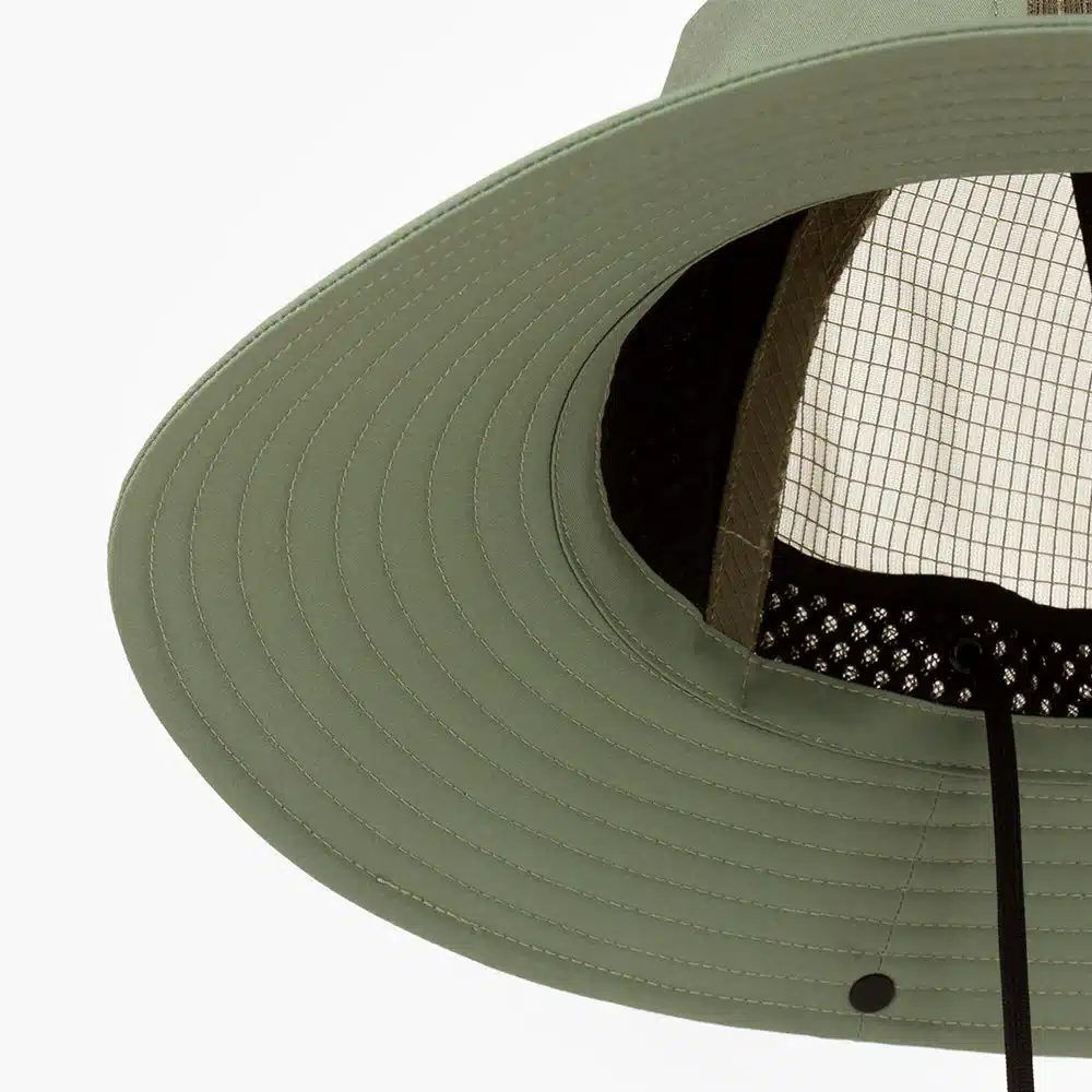if we designed the new TRLCap to be the ultimate trail cap (we did) then this is clearly designed to be the ultimate trail bucket. the TRL crown, found on the bucket as well as the cap, was designed with intent. higher than usual, it encourages air circulation, leading to faster cooling. an extra wide 360º brim throws shade while our fit focused recycled FLEXweave woven fabric brings UPF protection and a clean, modern look. we’ve engineered a new liner with an integrated headband for reduced fabric consumption, this in a lightweight COOLmatic | PLUS PROPHORmesh™ fabric for structure, ventilation, and anti odour. our ZIPmesh is found on the back panels, breathable but structured and tear resistant. an adjustable chin strap keeps this hat on when the big winds come. the One Hundred logo is found, small, but front and centre in a reflective print.
