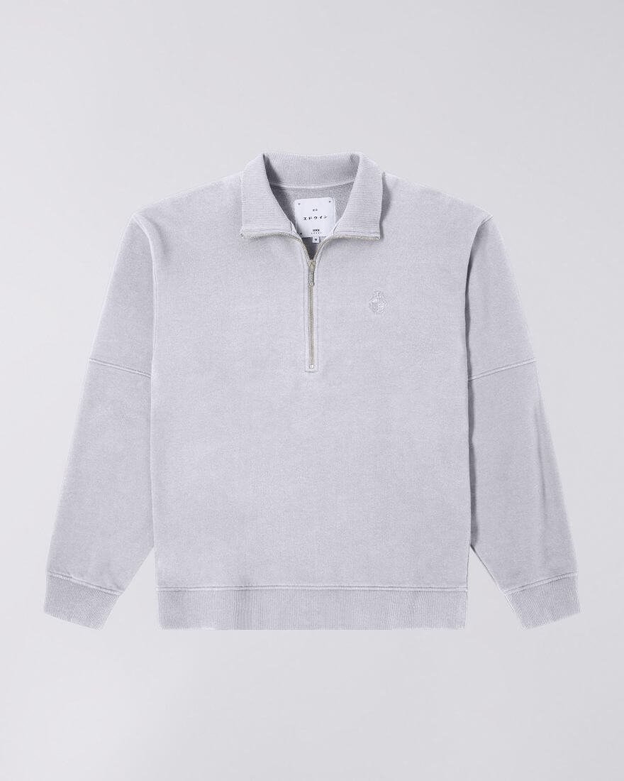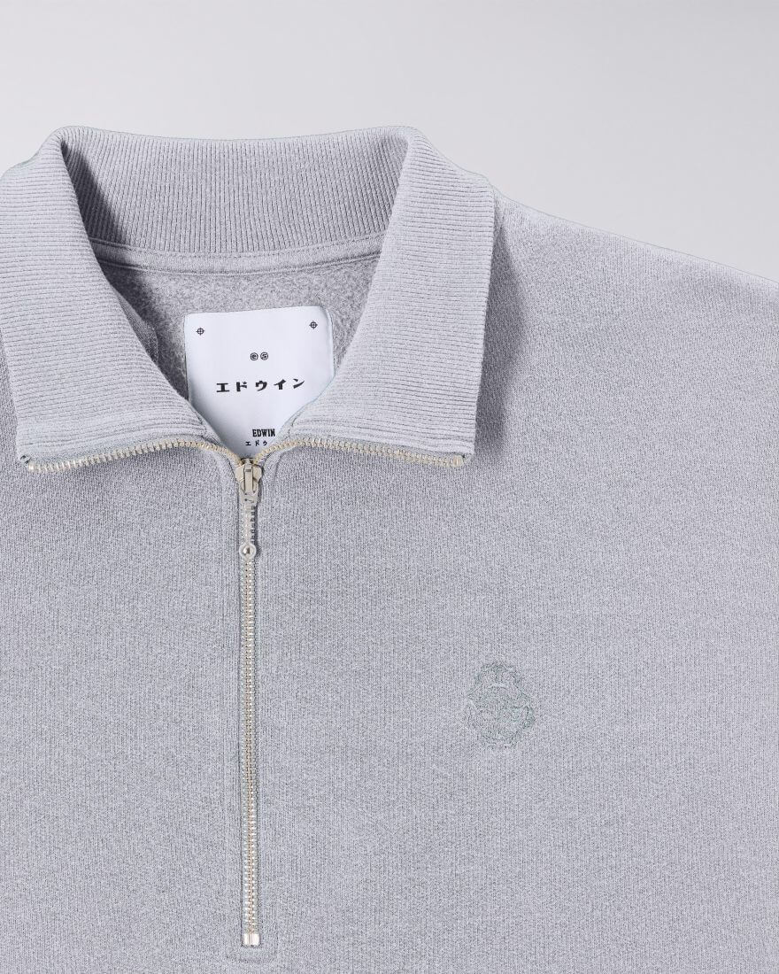 The Koji sweat is designed for a relaxed shape with an oversized fit. Made from 350g/m² heavy unbrushed felpa (100% cotton), it features chest embroidery and a metal zip on the front collar. Finished with ribbed collar, cuffs, and bottom hem.