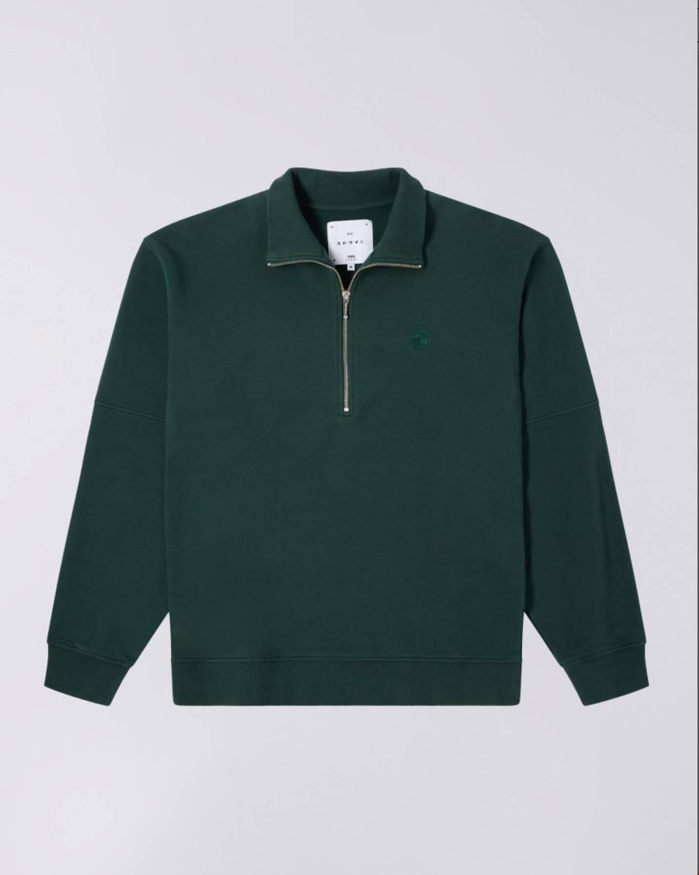 The Koji sweat is designed for a relaxed shape with an oversized fit. Made from 350g/m² heavy unbrushed felpa (100% cotton), it features chest embroidery and a metal zip on the front collar. Finished with ribbed collar, cuffs, and bottom hem.