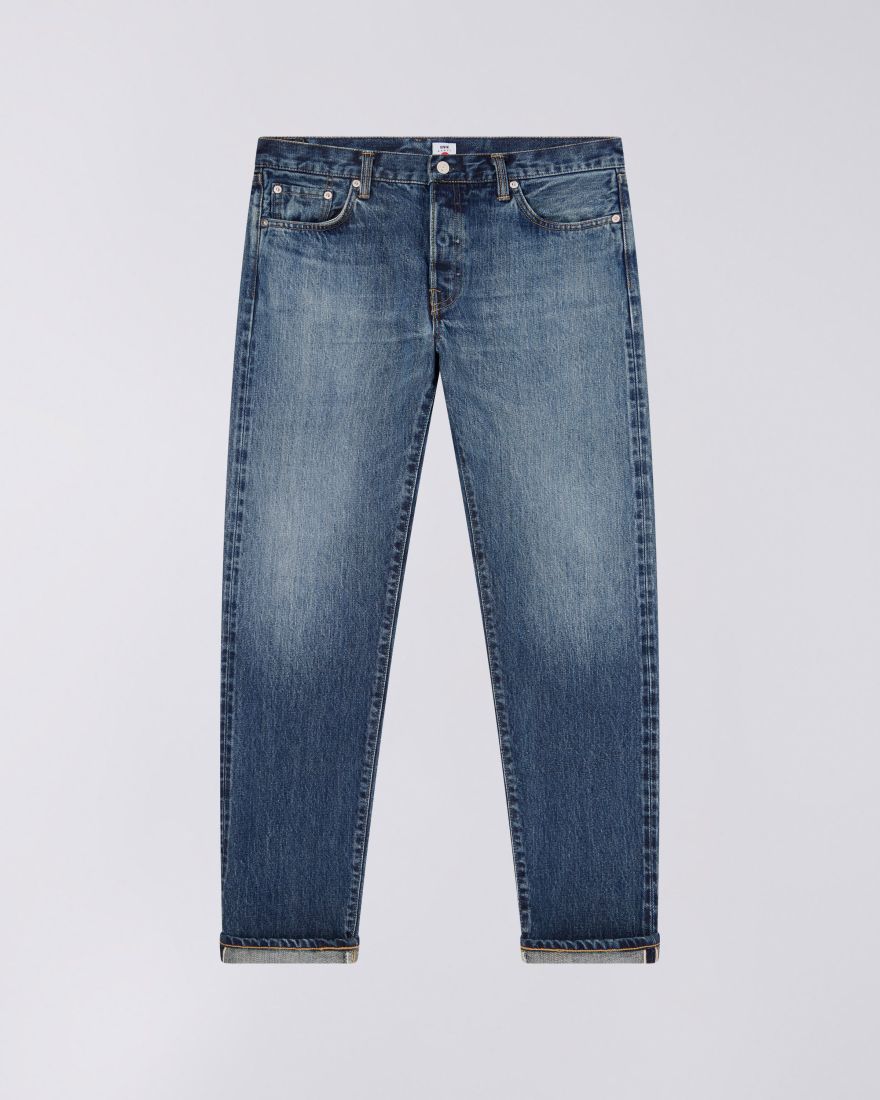 The Regular Tapered Jeans are produced in Japan from a 14oz Kurabo Recycle Red Selvage Denim Fabric, made of 100% cotton. Featuring a regular tapered fit, mid rise, and a classic five-pocket design with a button fly, they offer a modern, streamlined silhouette. The Blue Dark Used wash gives the denim a deep, rich tone with subtle wear. Finished with a 100% pulp paper patch on the back, this piece embodies the craftsmanship and attention to detail that define EDWIN’s ‘Made in Japan’ collection.