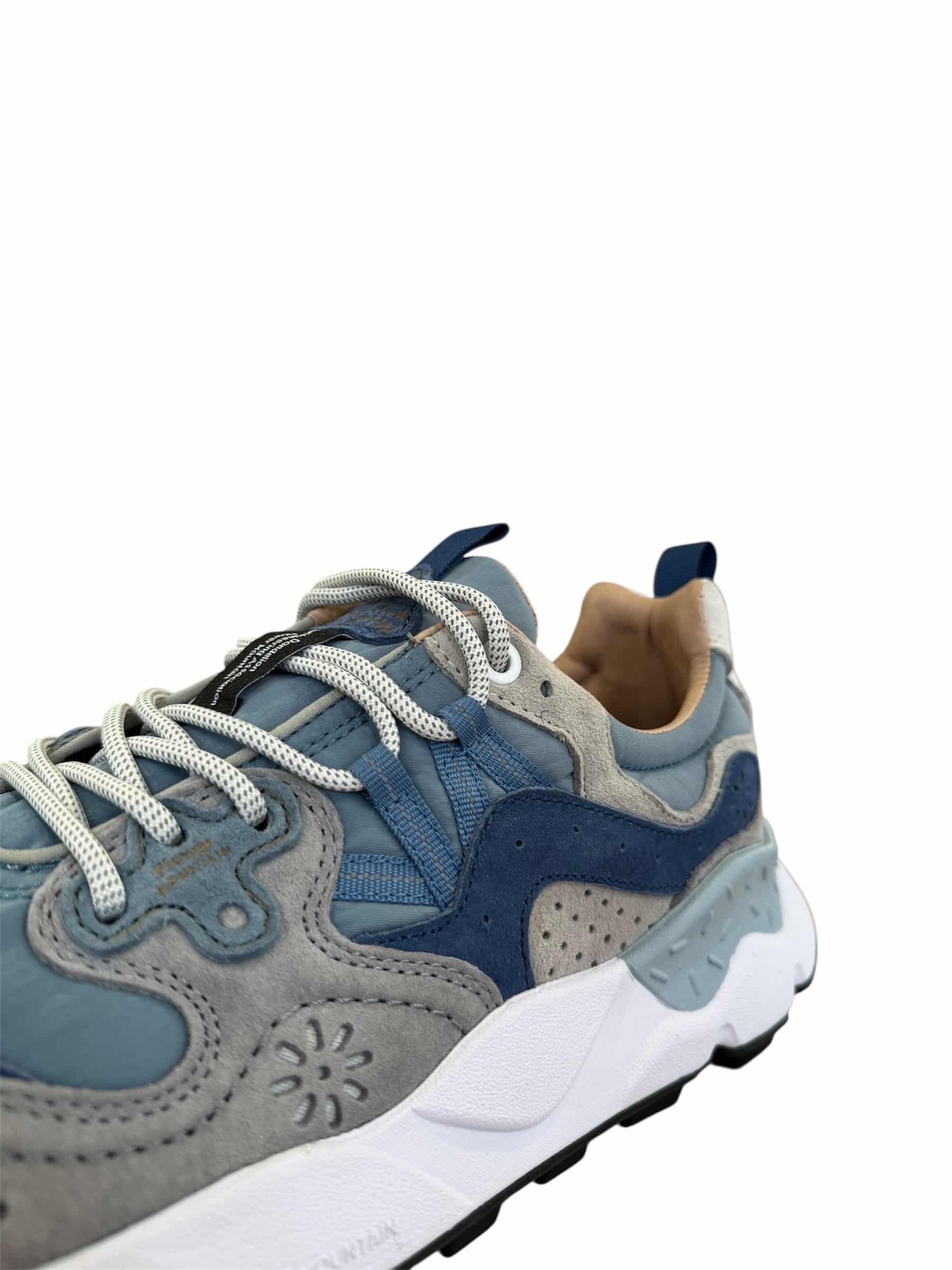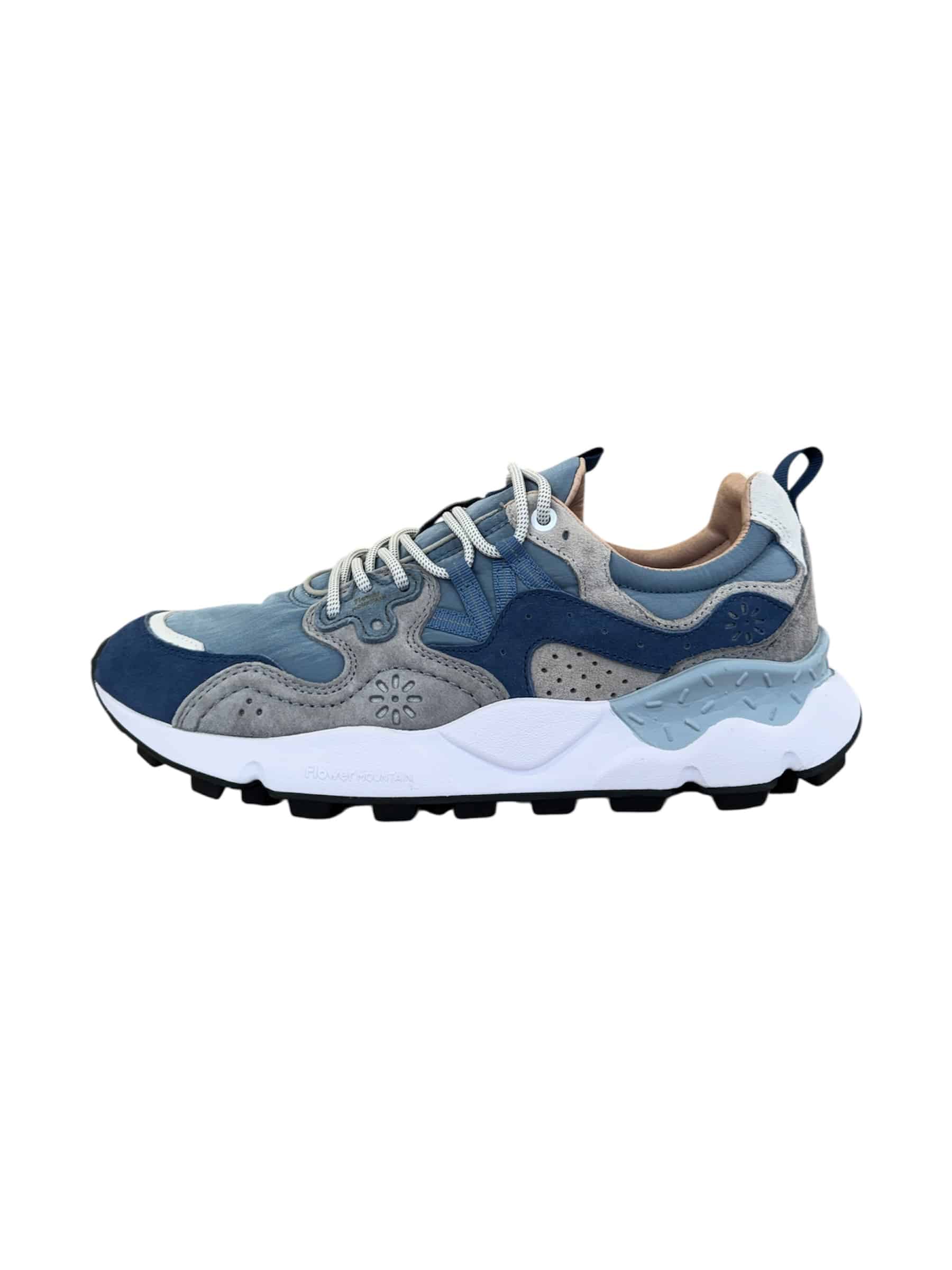 Sneaker in technical fabric with multi-coloured suede inserts. Reinforced eyelets and trek laces. Insole in natural antibacterial cork, ultra-lightweight rubber sole with indented tread.