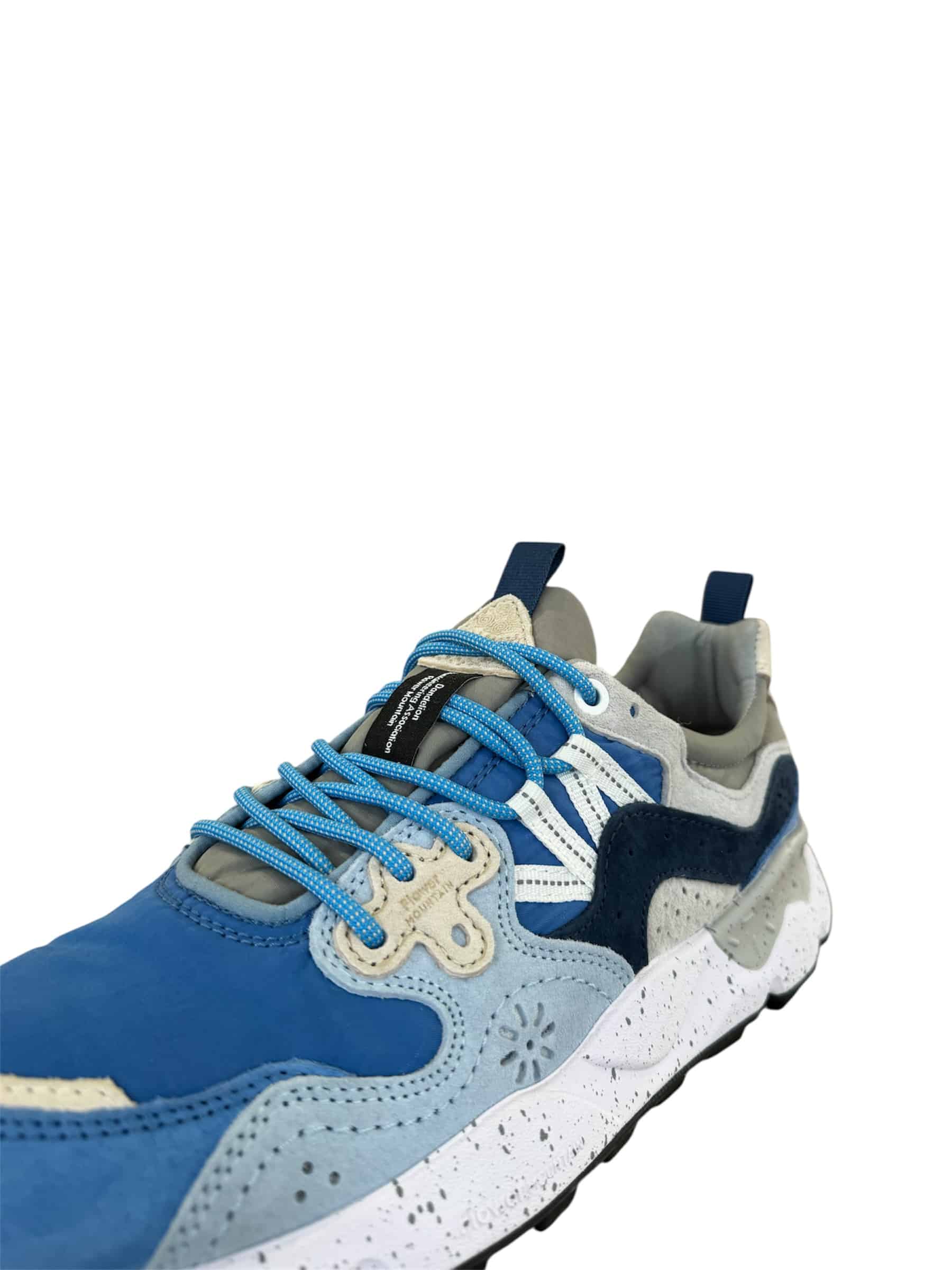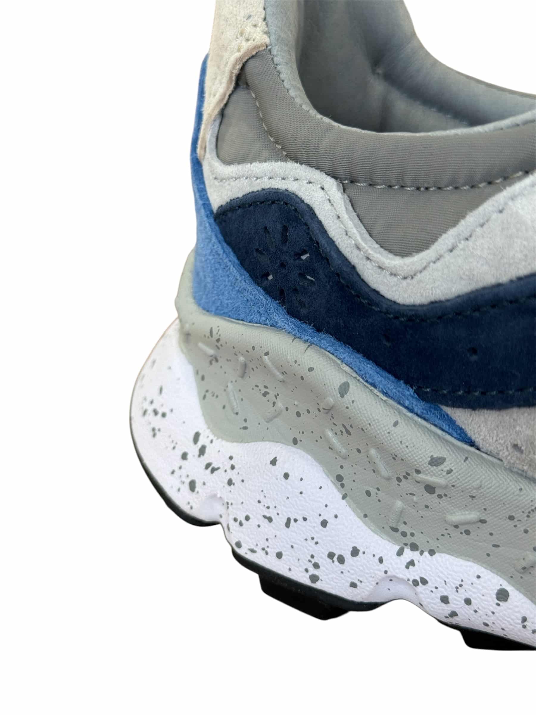 Sneaker in technical fabric with multi-coloured suede inserts. Reinforced eyelets and trek laces. Insole in natural antibacterial cork, ultra-lightweight rubber sole with indented tread.