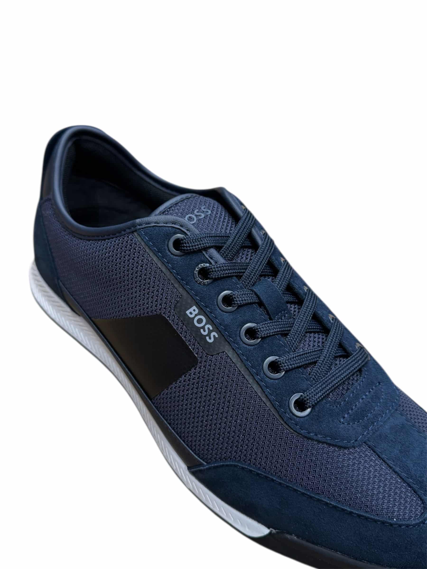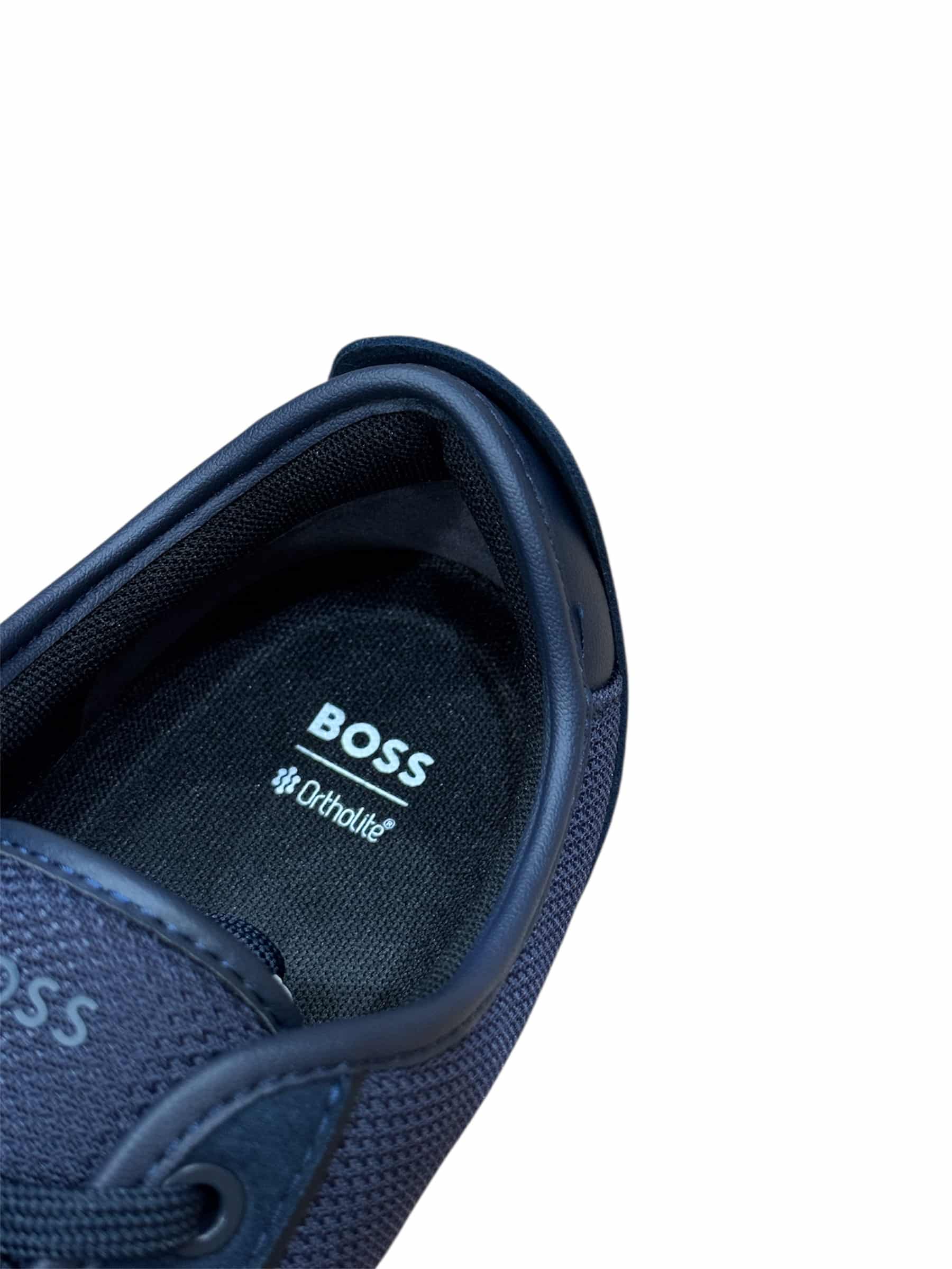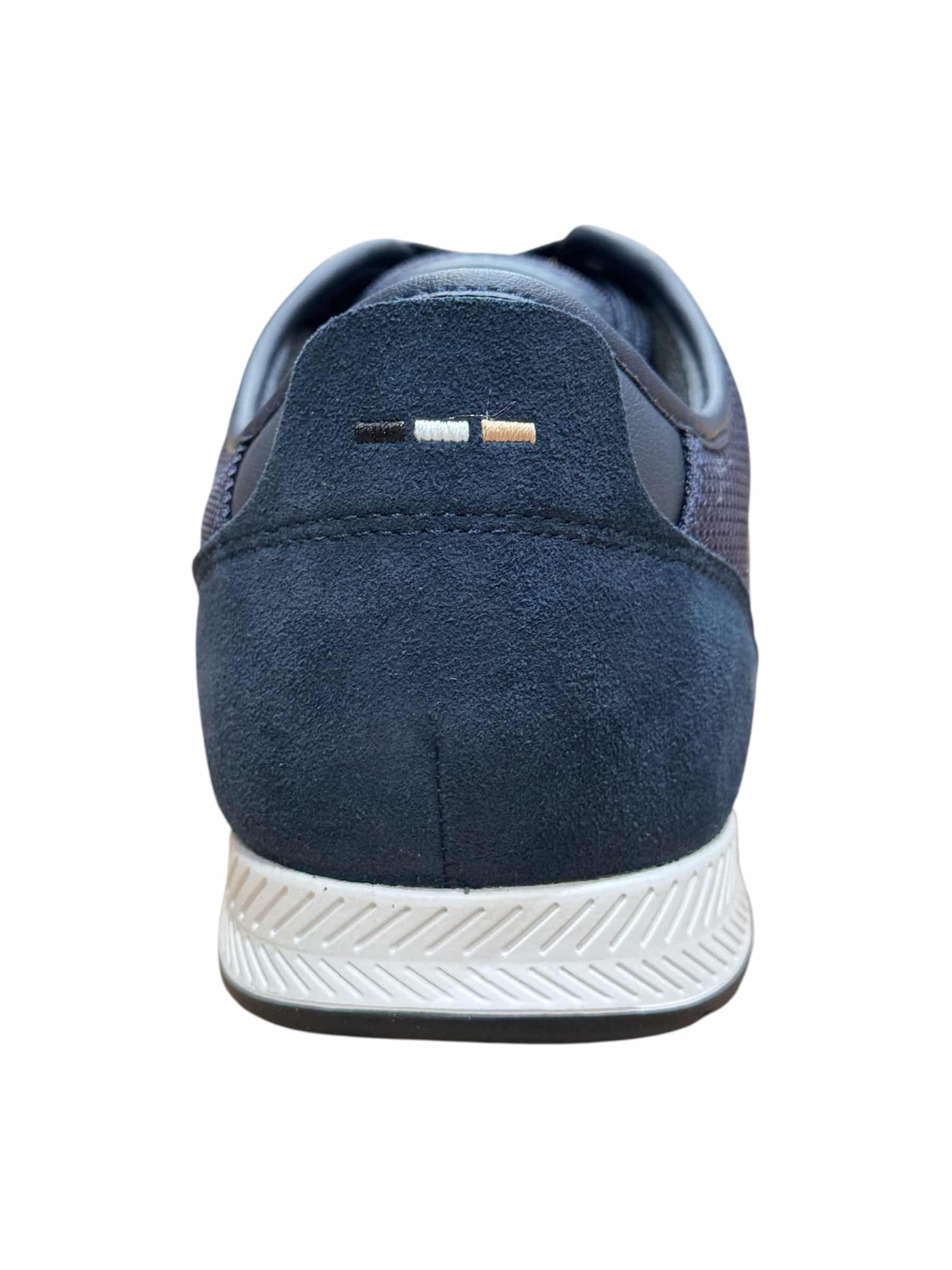 With branding at the side, counter and tongue, these BOSS Menswear trainers are distinctively sporty. Mixed materials with mesh trims. Ridged rubber sole.