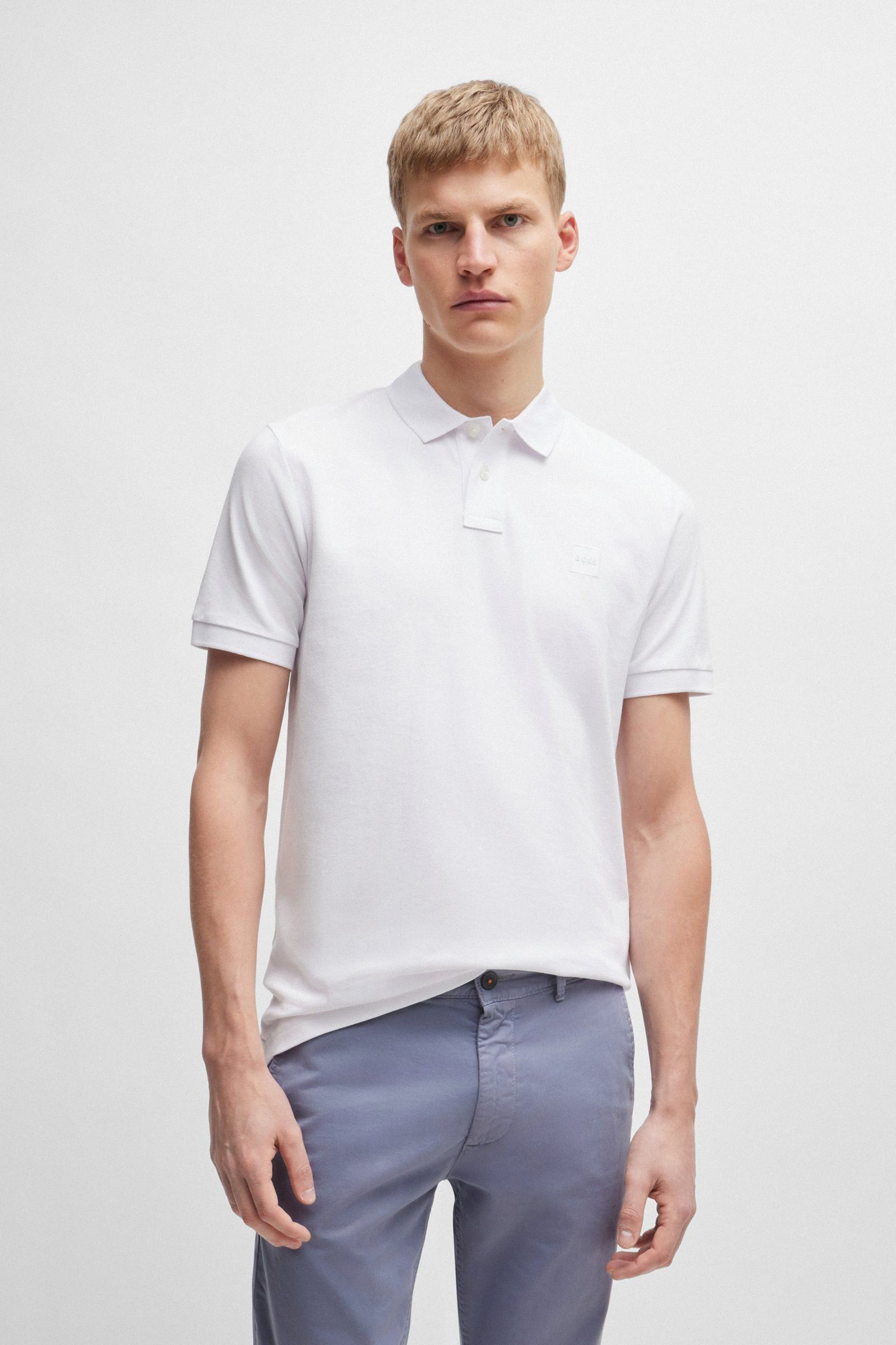 Featuring a woven logo patch, this versatile BOSS Menswear polo shirt is crafted in sporty stretch-cotton piqué. Cut to a slim fit.