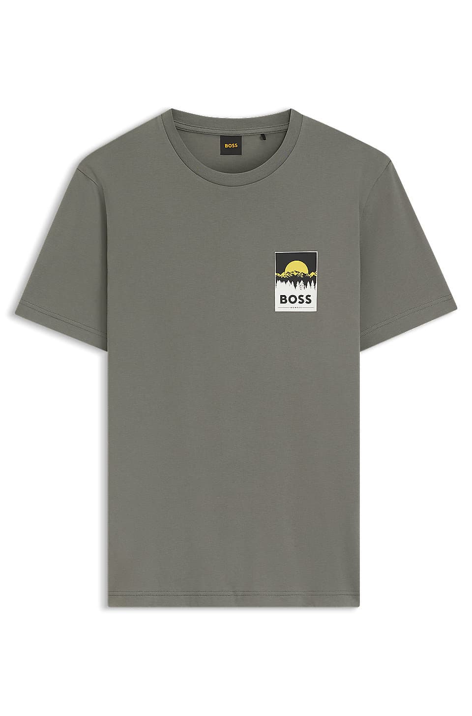 Crafted in cotton for casual comfort, this Boss Menswear T-shirt adds interest with a its adventure – inspired artwork. Cut to a straight fit