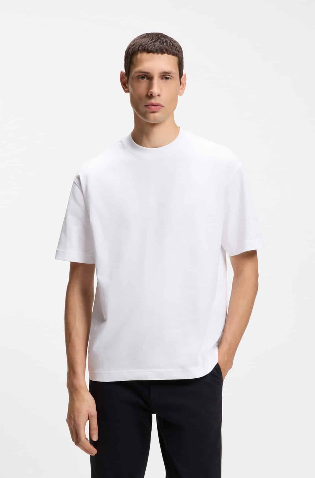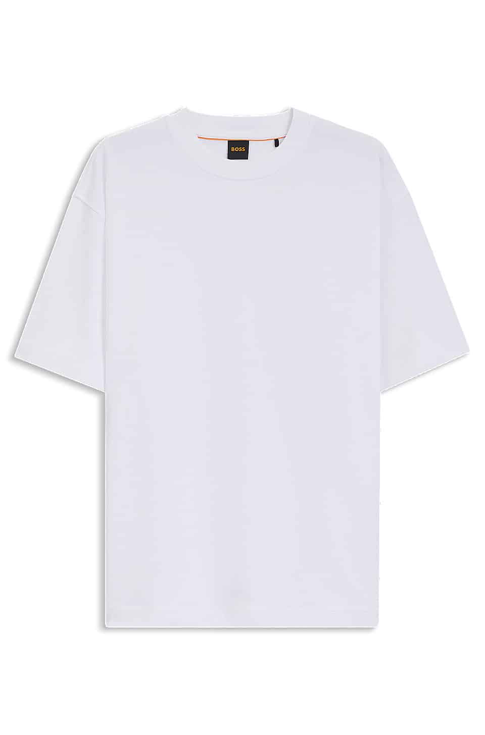 With its roomy cut and weighty feel, this cotton BOSS Menswear T-shirt is a casual essential. Back-neck logo print. High collar.