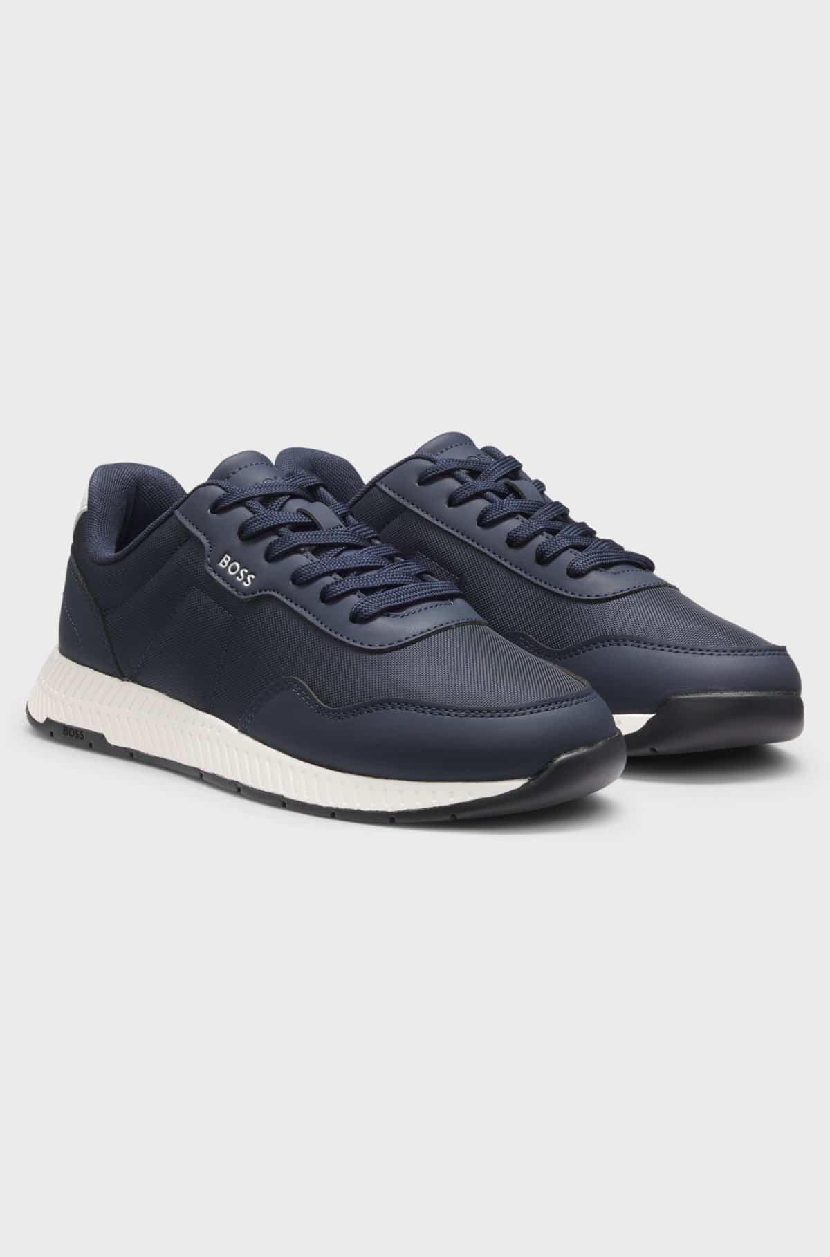 Featuring logo details and signature-stripe stitching, these BOSS Menswear trainers add a distinctive touch to everyday looks. Mixed uppers in textured and smooth fabrics.
