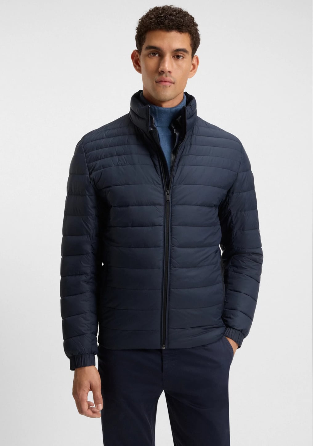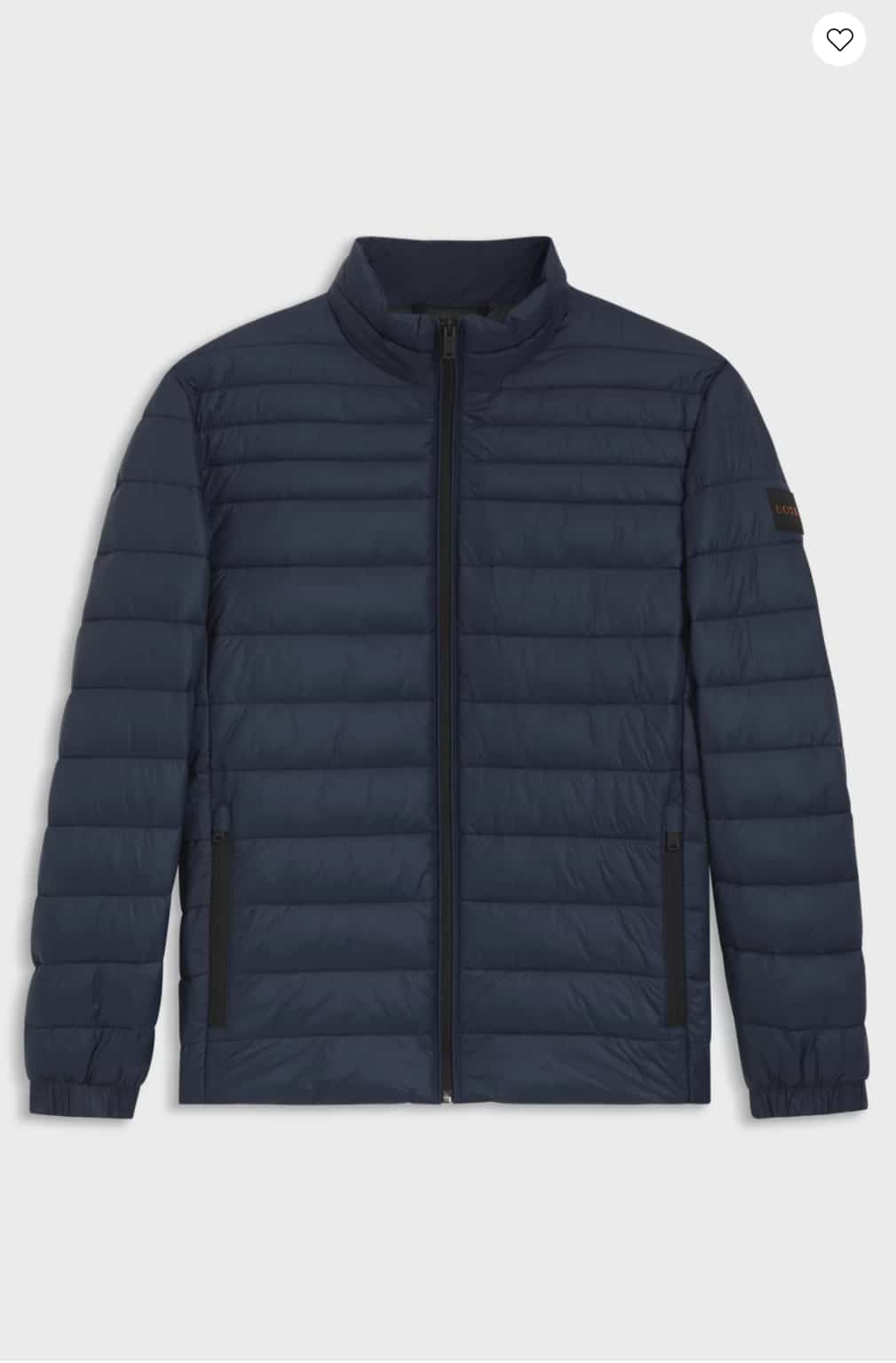 Packable for on-the-go protection, this slim-fit BOSS Menswear jacket is a trans-seasonal must. Water repellent with mixed quilting and lightweight padding. This product contains at least 60% better raw materials. This product is created with recycled polyamide.