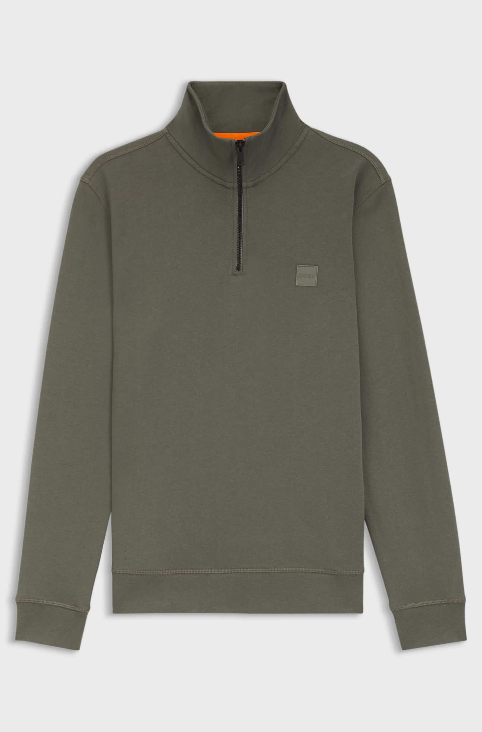 Trimmed with a logo patch, this BOSS Menswear sweatshirt has a quarter zip for classic layering. Crafted in soft French-terry cotton. Regular fit.