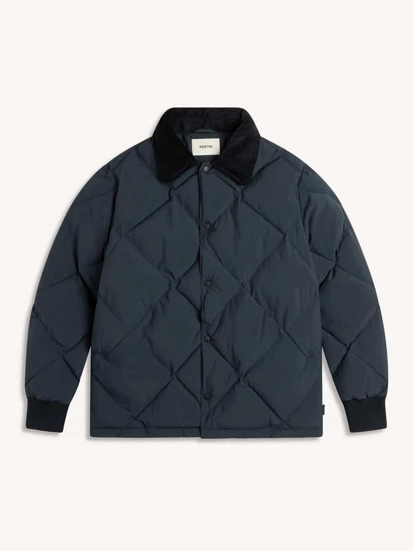 The Dunbar is a warm outerwear piece, inspired by a vintage American jacket, made from 100% Recycled Nylon with a DWR treatment for added weather resistance, and a corduroy trim to the collar.