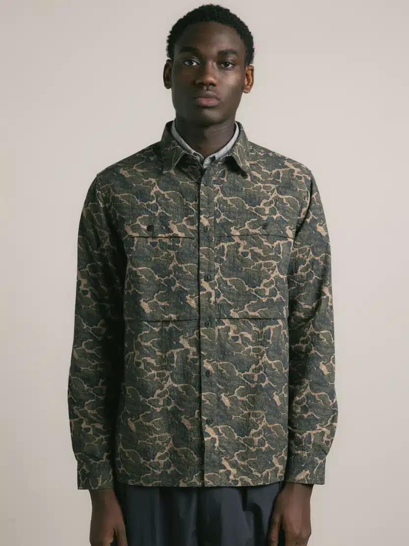The Taymount is modelled on a vintage hiking shirt, with a buttoned front and cuffs, plus two buttoned map pockets to the chest, which have been slightly bellowed for more volume.
