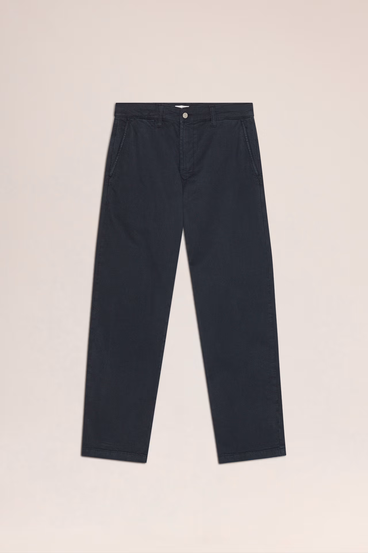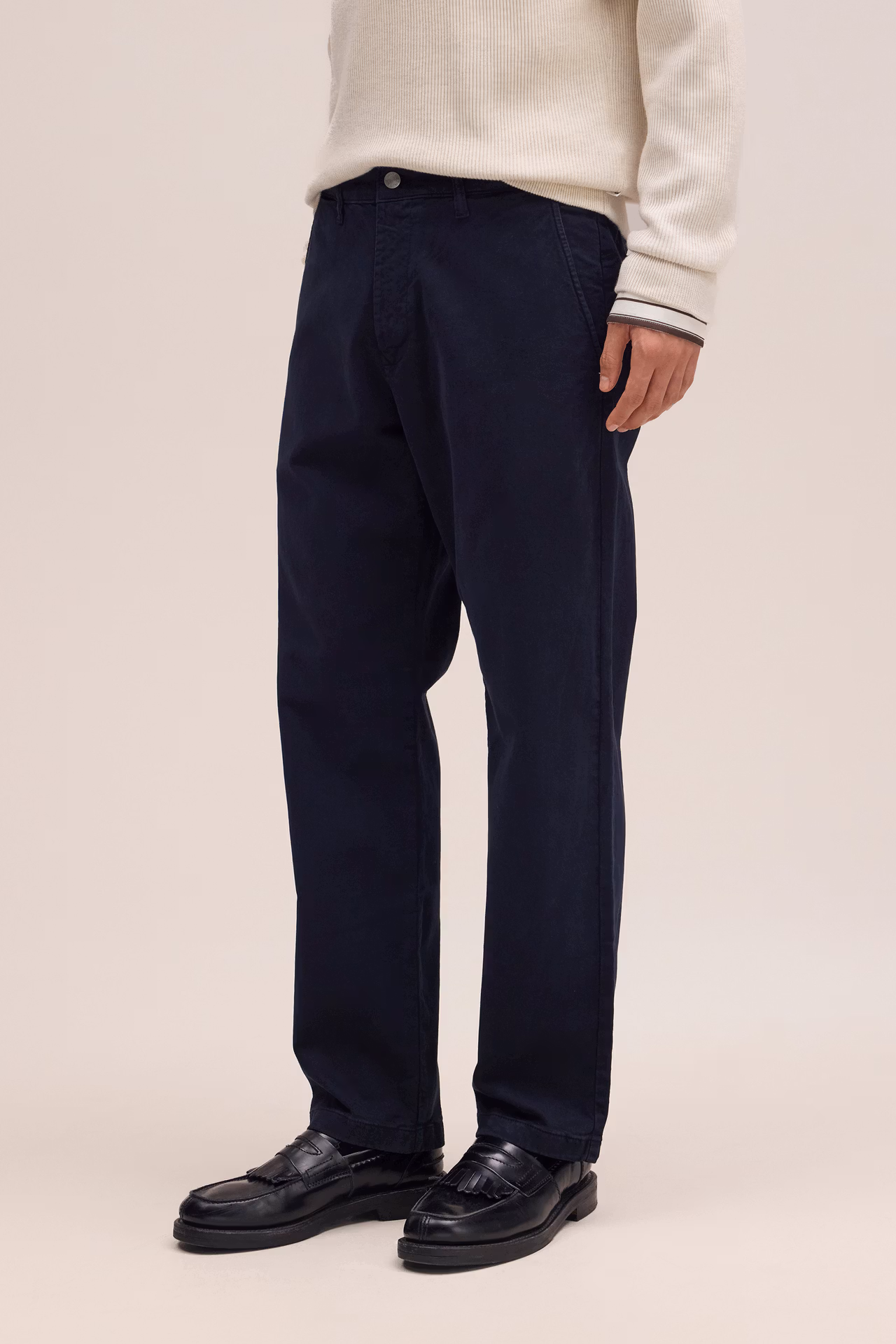 Chinos crafted in organic cotton-blend twill with a touch of stretch for added comfort. Garment-dyed for a soft, peachy handfeel and finished with embroidery details and a classic jeans button closure.