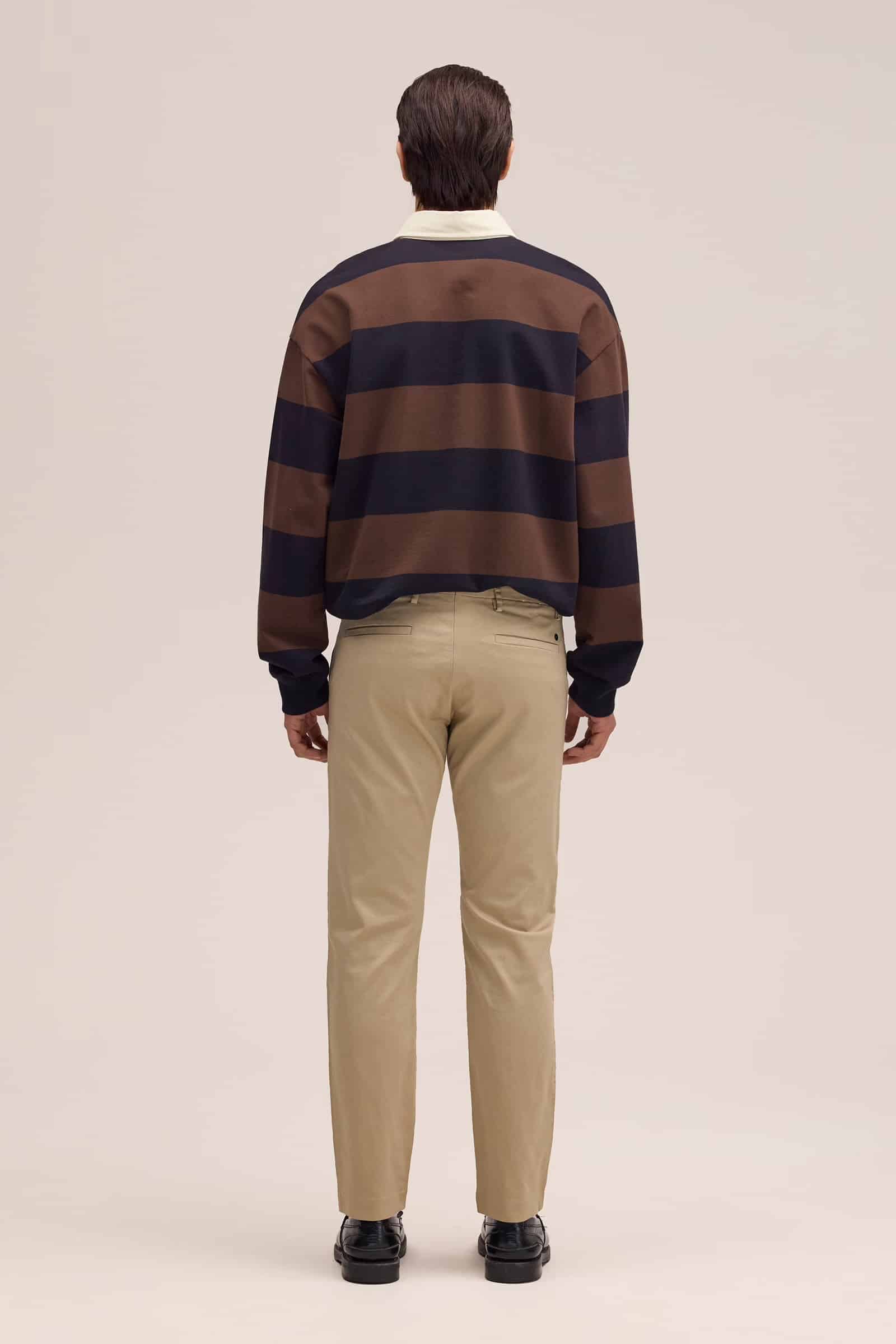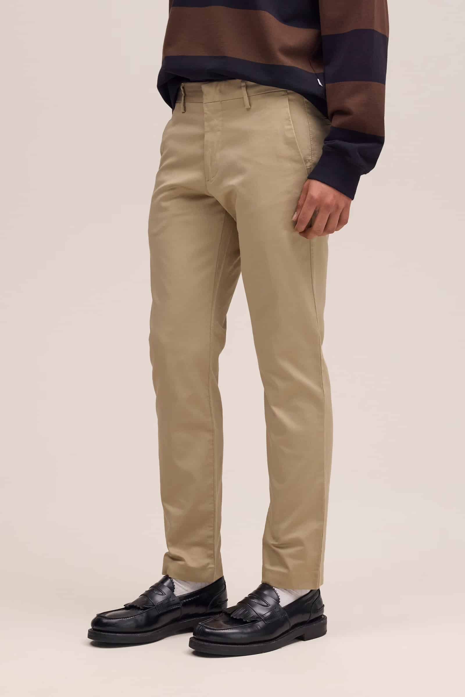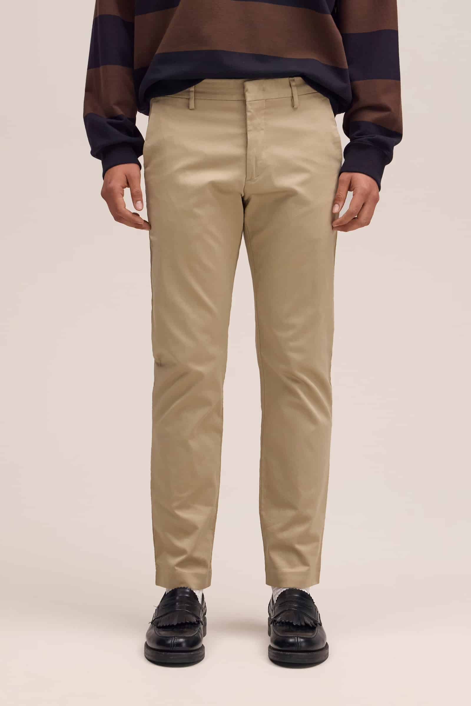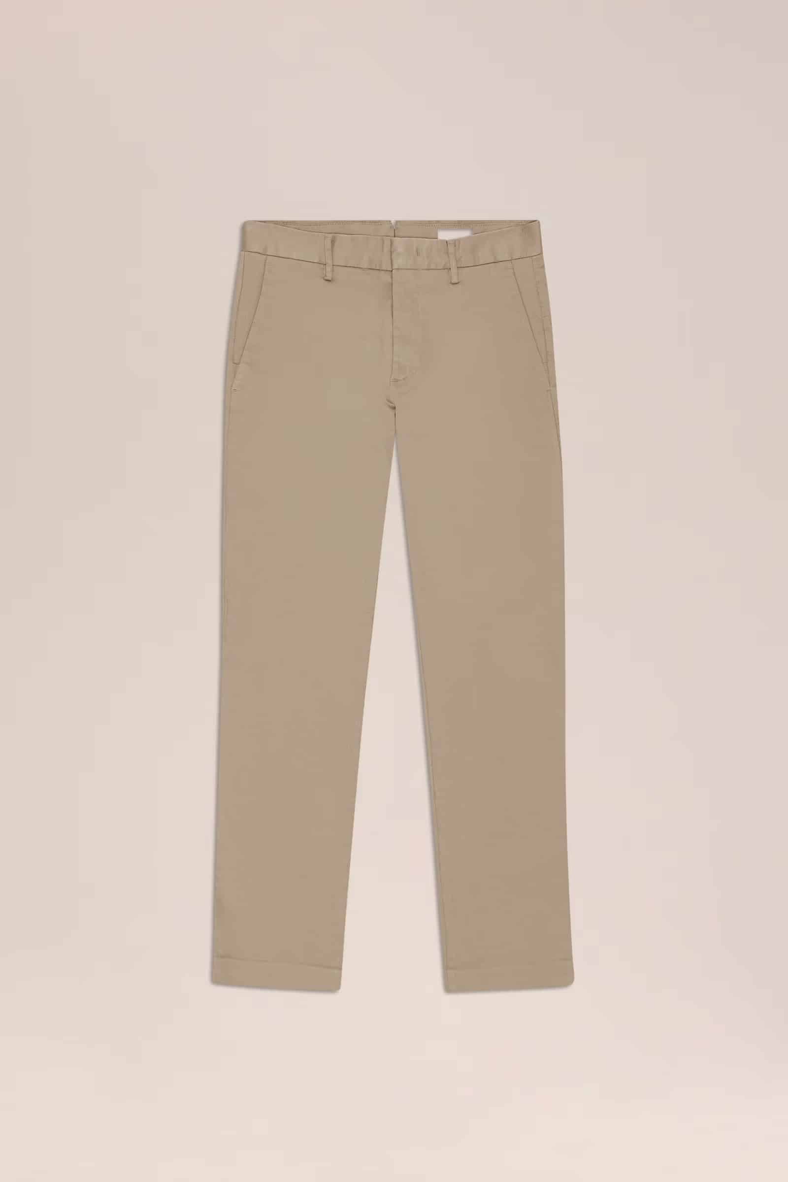Slim tailored chino with tapered leg crafted in a 260 g/m2 soft organic cotton blend complete with a crisp crease and blind hem. Tailored details with a Cobrax hook and eye closure and welt pockets.