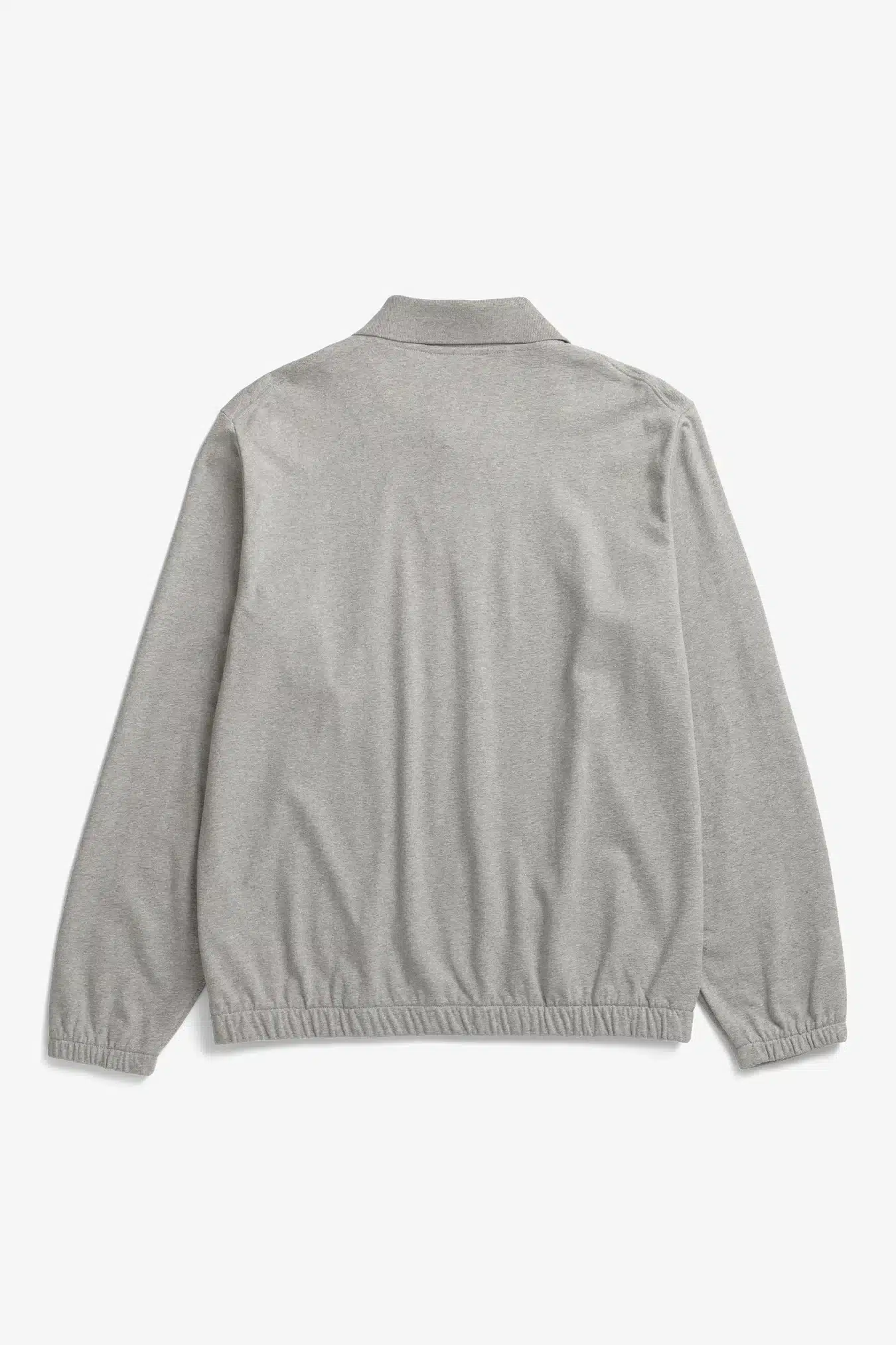 A relaxed fitting polo constructed in a textured cotton jersey. The pile backside of the fabric adds a subtle texture to the outside. The style features a flat knitted rib collar, single snap button closure and elasticated hem and cuffs.