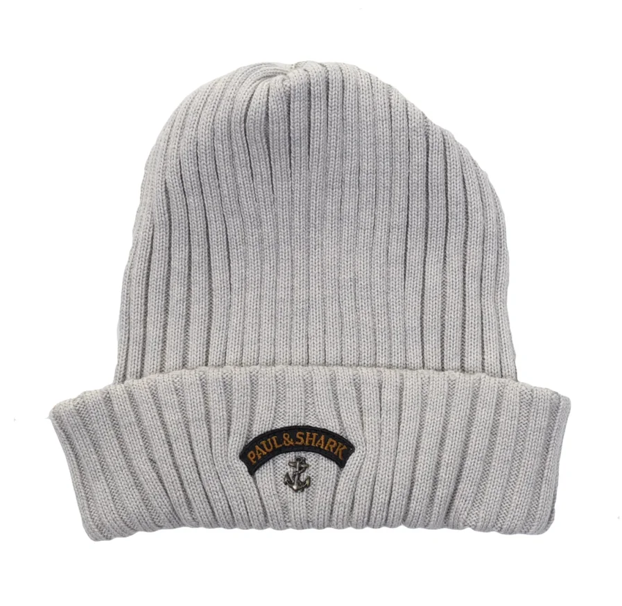 Paul & Shark anchor beanie in black with branding on the front fold and a ribbed style. An iconic beanie, ideal for the colder months to stay warm.
