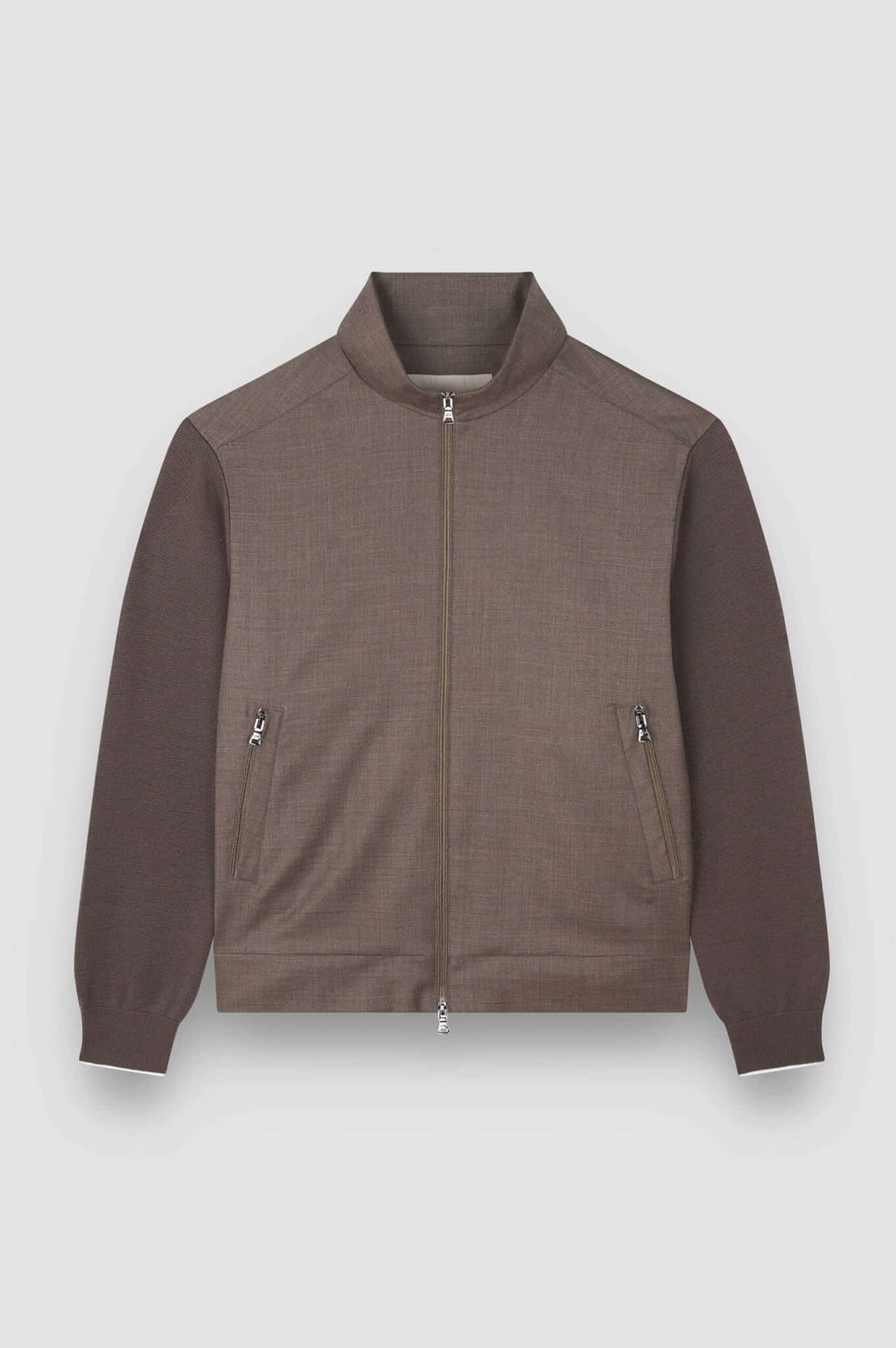 This Paul & Shark cardigan elevates the comfort of classic knitwear to new heights with exclusive materials and sartorial sophistication. This style is knitted from extra-fine Merino wool with a sophisticated weave that feels naturally soft and luxurious against the skin. The front stands out in technical fabric, produced in Italy using Loro Piana’s Rain System®: a Loro Piana registered trademark that makes the fabric waterproof and wind-resistant.