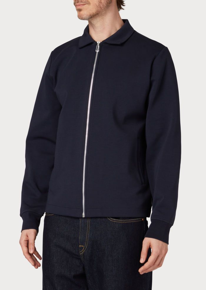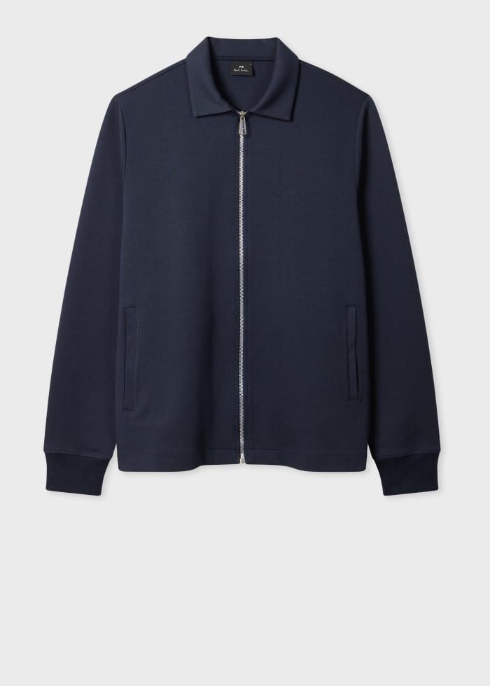 Made from a cotton-blend jersey with a double-face construction, this zip-front sweatshirt features two front pockets and a folded collar. Cut for a regular-fit, this sweatshirt is finished with ribbed cuffs.