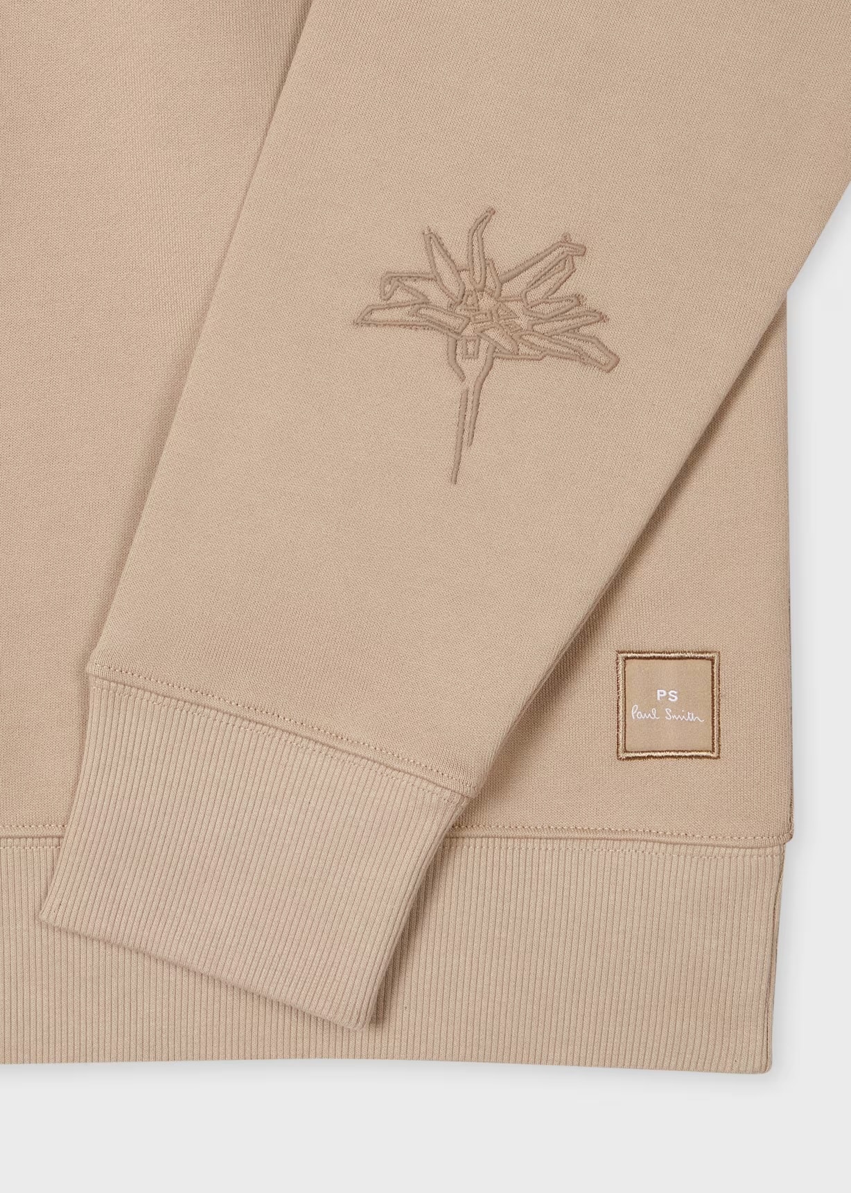 Made from 100% loopback organic cotton jersey, this light blue sweatshirt features a zip neck design with point collar. Dyed using natural food and botanical plant derived dyes – this sweatshirt is finished with an embroidered ‘Edelweiss’ motif on the sleeve.