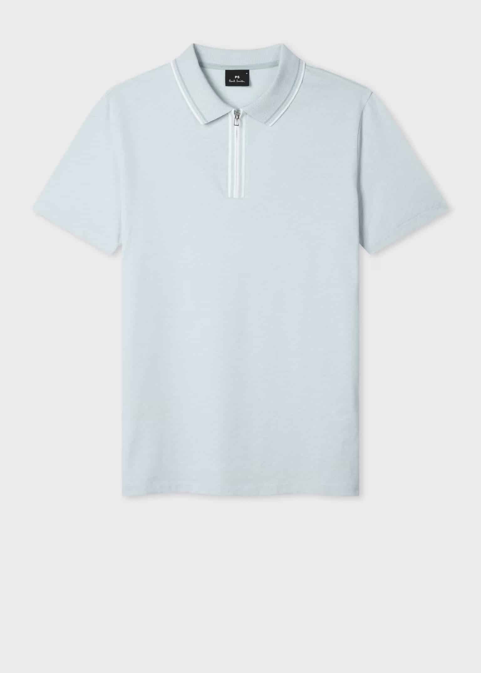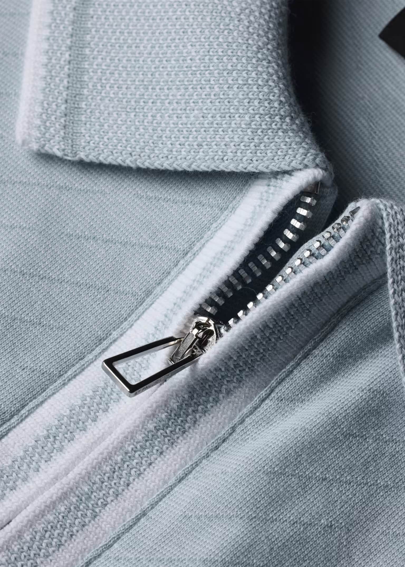 Made from 100% organically grown cotton for everyday comfort, this pale blue polo shirt features a zip neck design. Complete with a subtle jacquard pattern, this polo is finished with split side vents, for greater ease of movement.
