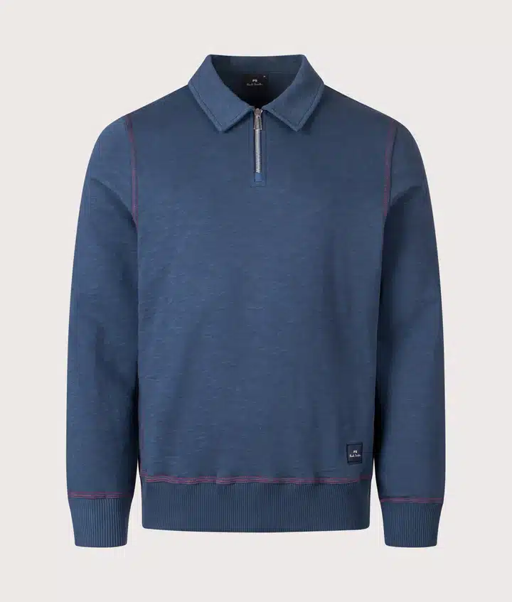 Constructed from a cotton blend with added polyester for comfort and durability, this layer is cut to a regular fit for easy wear. Designed with a quarter zip fastening, ribbed cuffs and hem, and finished with the PS Paul Smith woven patch at the hip.