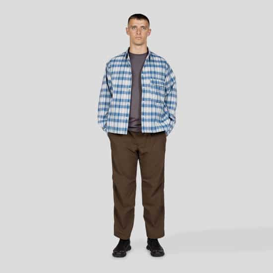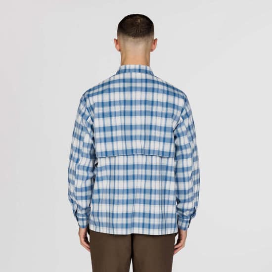 A lightweight polyester check shirt crafted for everyday comfort. Featuring CAVE® fabric technology, which delivers a soft, cotton-like feel with quick-drying and moisture-wicking performance. The fabric resists wrinkles, making it practical for travel and requires minimal maintenance. Its relaxed boxy silhouette and square-cut hem make it versatile; wear it as a standalone shirt or layer it as a lightweight jacket. Perfect for transitional seasons and outdoor adventures.