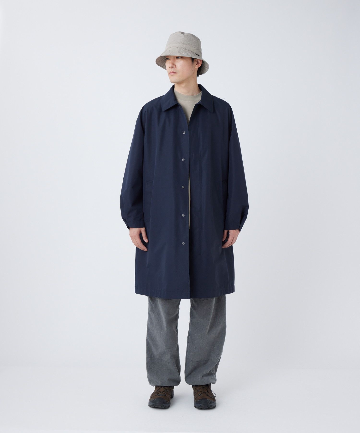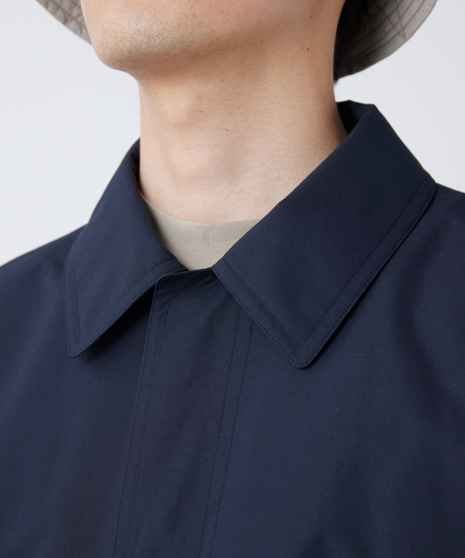 Bal collar coat using GORE-TEX WINDSTOPPER Shell. The material is excellently windproof and can be worn comfortably even on windy days. The material uses an environmentally friendly ePE membrane and has modern functionality. The design is based on the French military bal collar coat since 1990, and has been updated to be simple and easy to match any style. While it looks clean, it has a large-capacity pocket and storage space without the need for a bag, and can be used widely from everyday life to outdoor activities. The front opening is a dot button specification that is easy to put on and take off. The collar can be raised with a chin guard to increase windproofness. The width of the cuffs can also be adjusted with dot buttons. On the left and right sides, there are through pockets that can access the pants, and there are also zipper pockets on the inside that can organize small items.